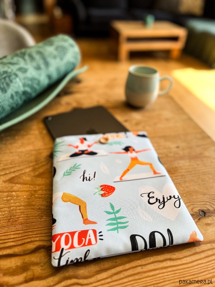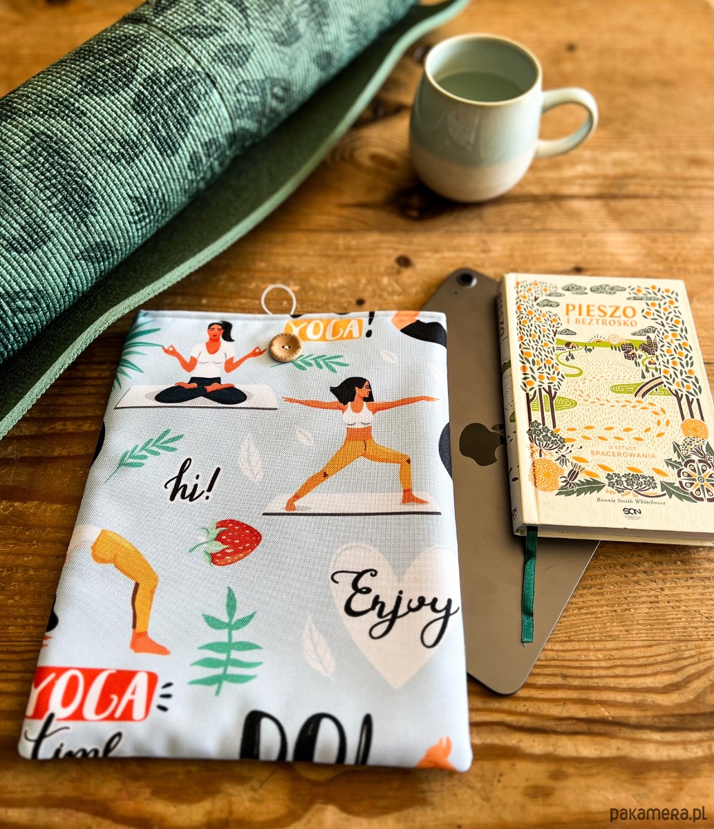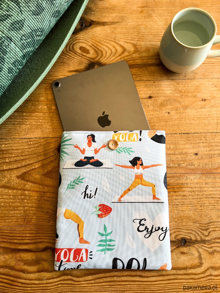 Zapinany na guzik z elastyczną gumką, świetnie trzyma zawartość w środku. Wzór z motywem jogi – różne pozycje i sylwetki – doda harmonii i spokoju każdemu czytelniczemu rytuałowi. To także wyjątkowy prezent dla miłośników jogi i książek.