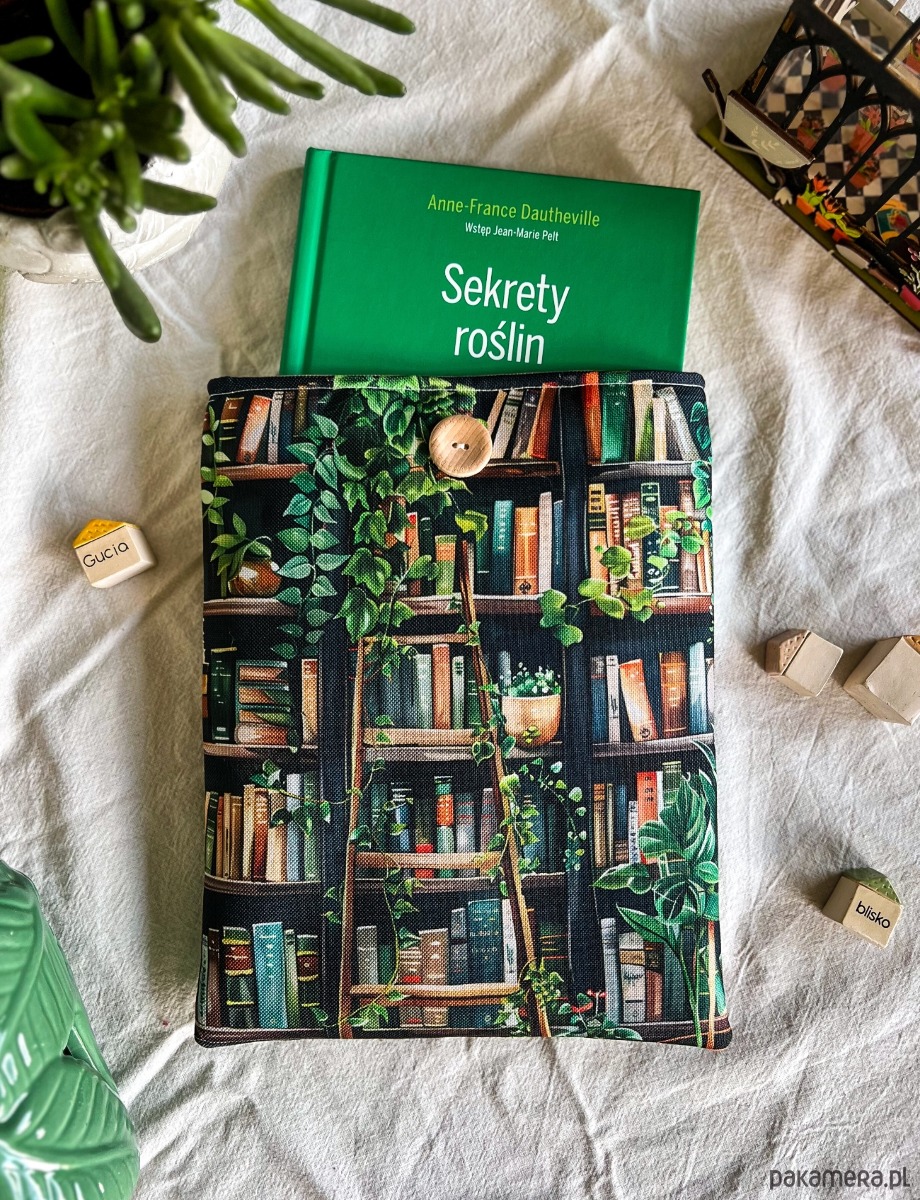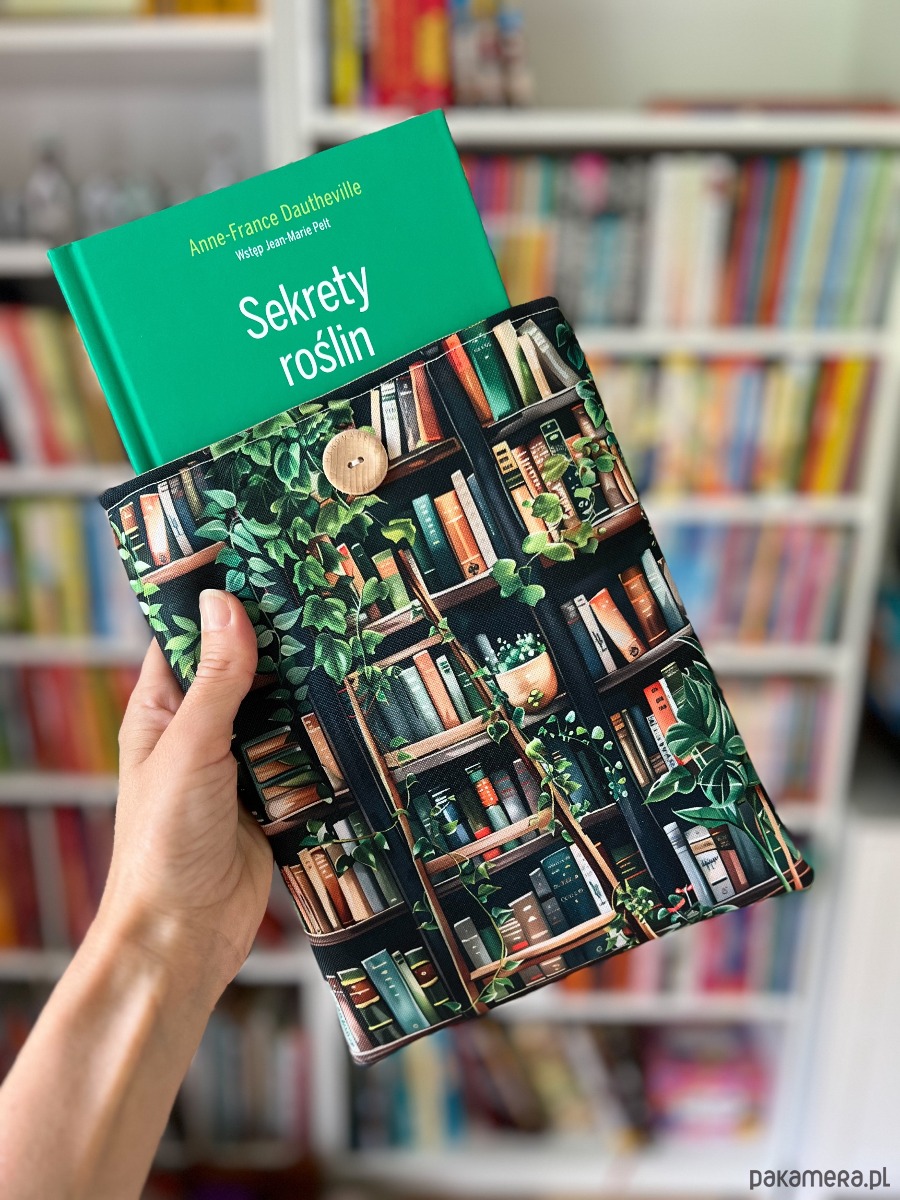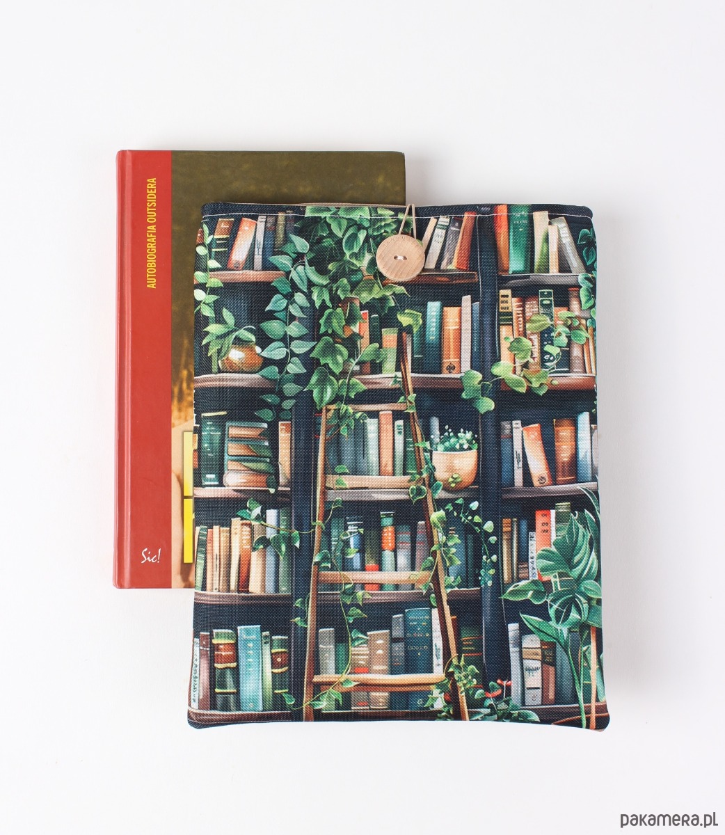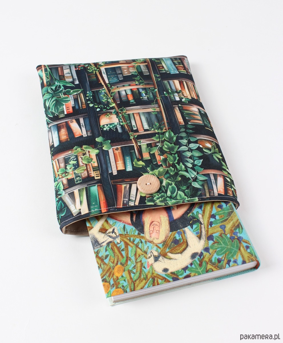 Zapinany na guzik z elastyczną gumką, świetnie trzyma zawartość w środku. Wzór z motywem książek i kwiatów zachwyci każdego miłośnika czytania i będzie też pięknym prezentem.