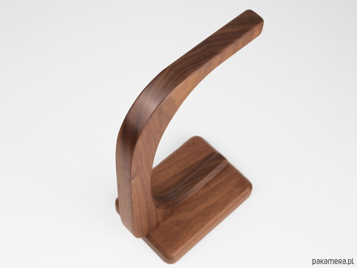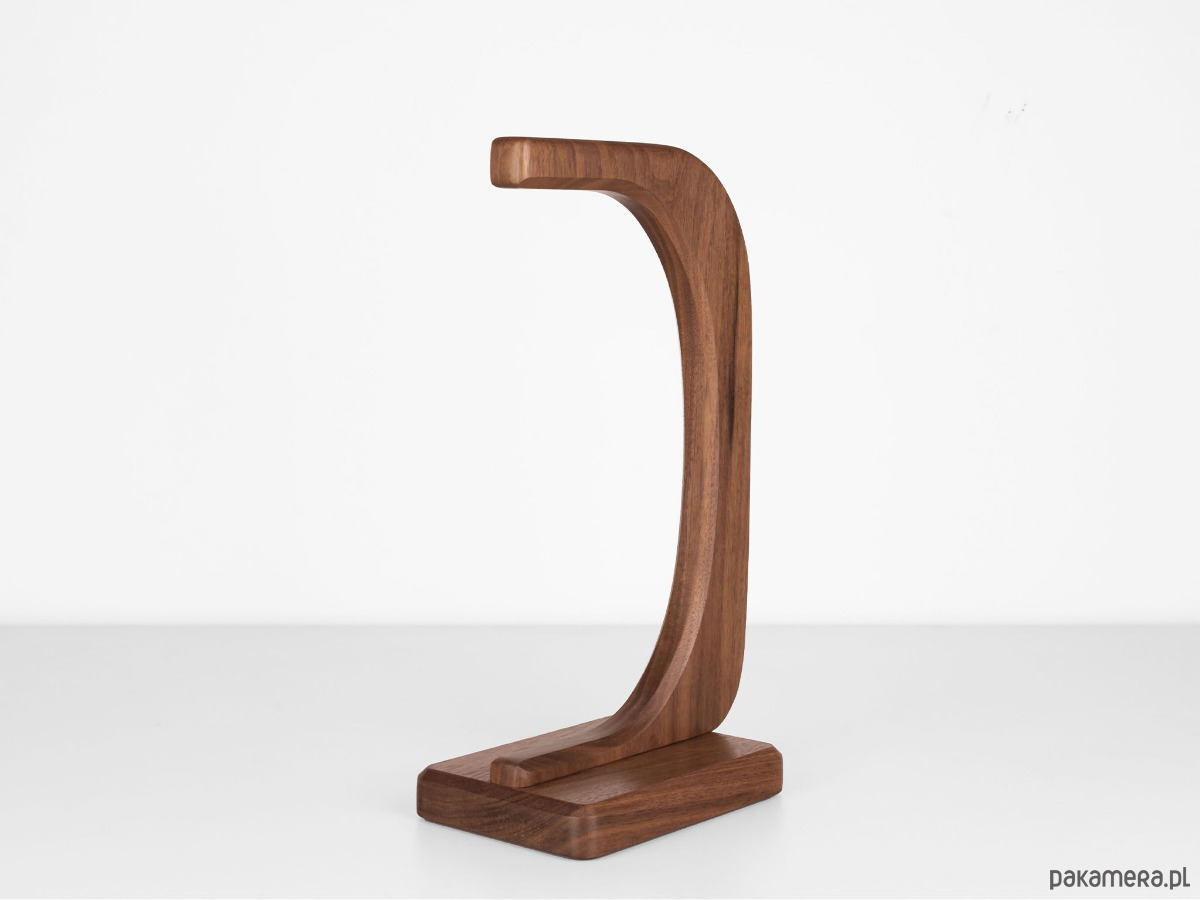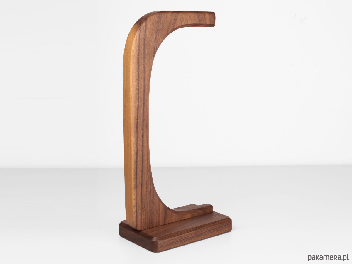 Ekskluzywny stojak na słuchawki wykonany z najwyższej jakości drewna orzecha i dębu.