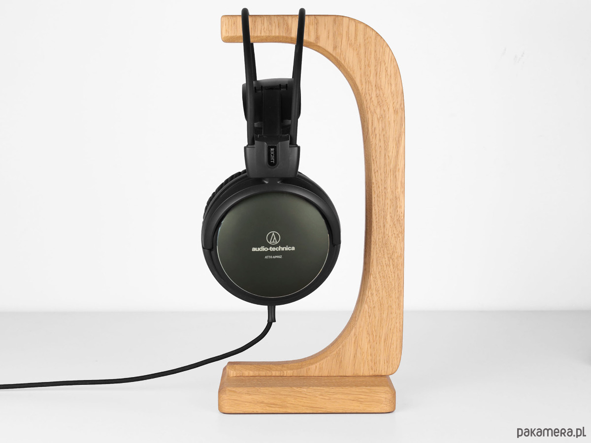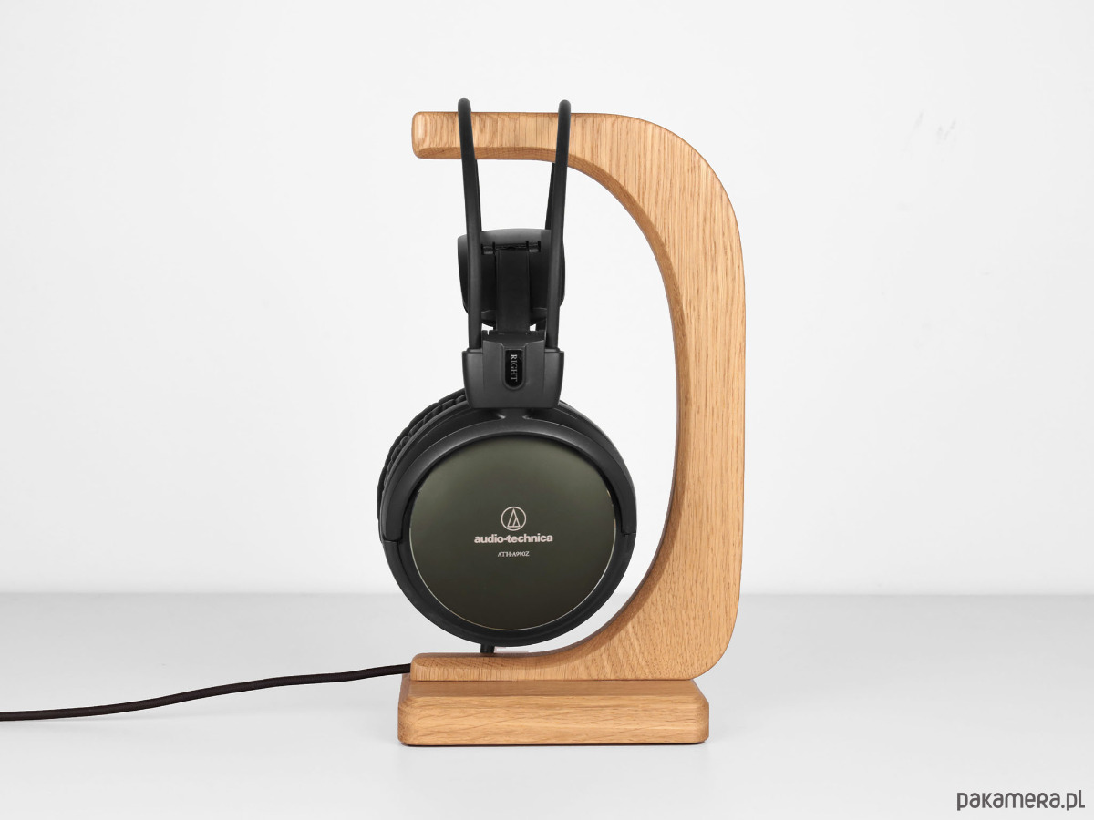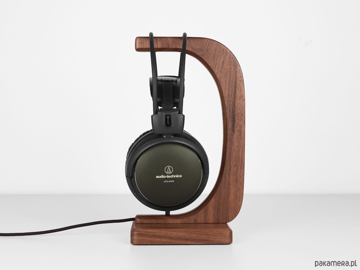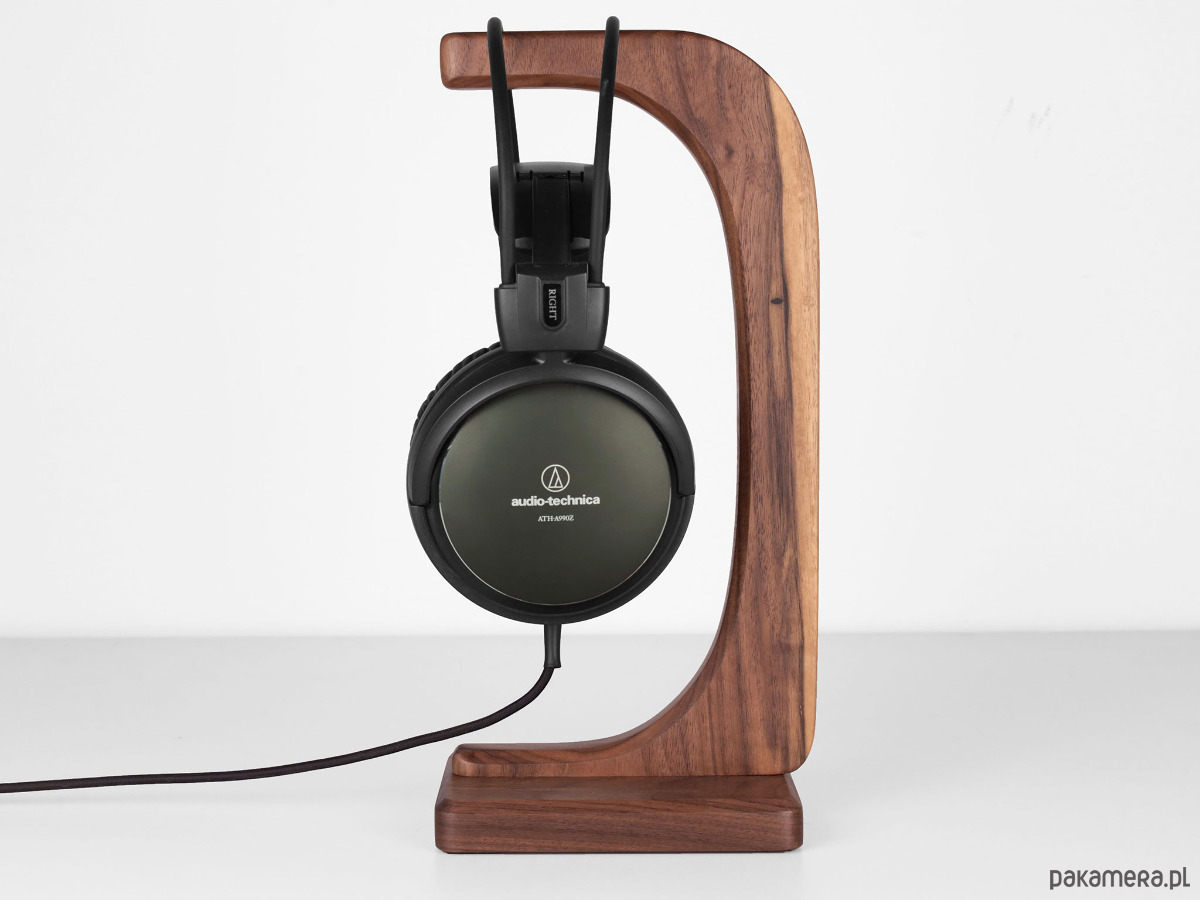 Ekskluzywny stojak na słuchawki wykonany z najwyższej jakości drewna orzecha i dębu.