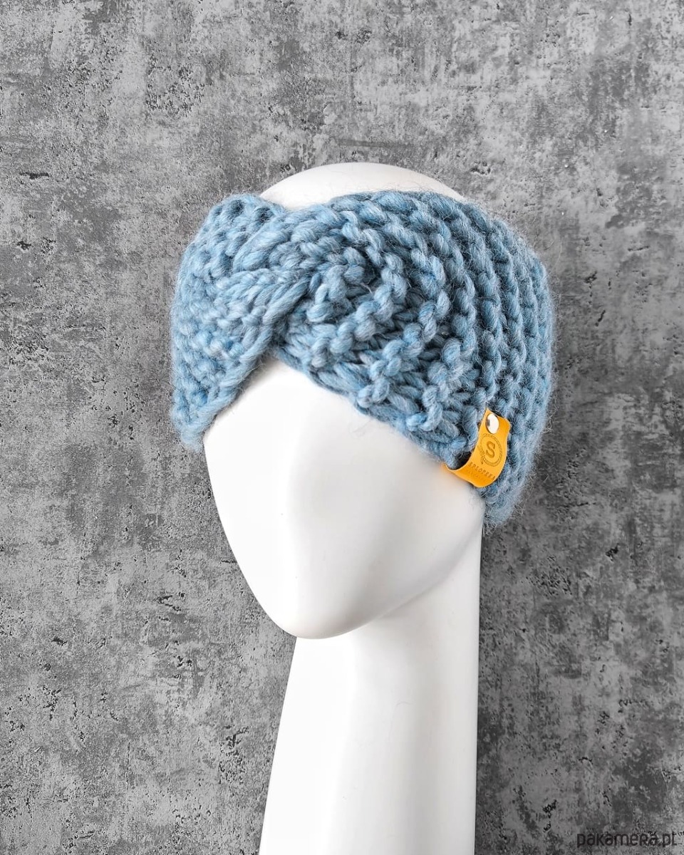 Opaska z twistem przypomina turban, okrywa prawie całą głowę zostawiając przestrzeń na włosy