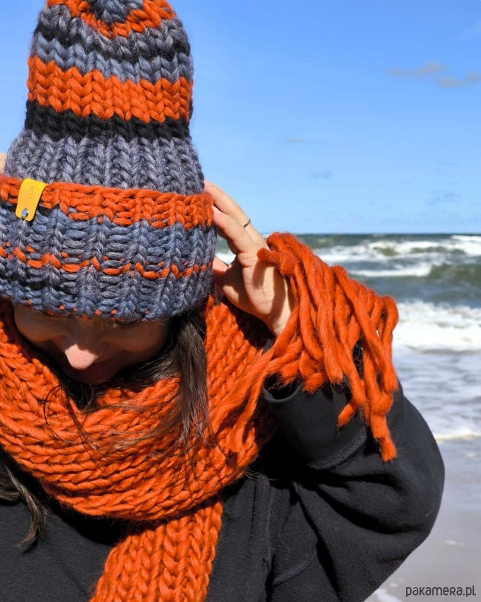 WOOLY COLOR "10"gruba wełniana czapka w paseczki