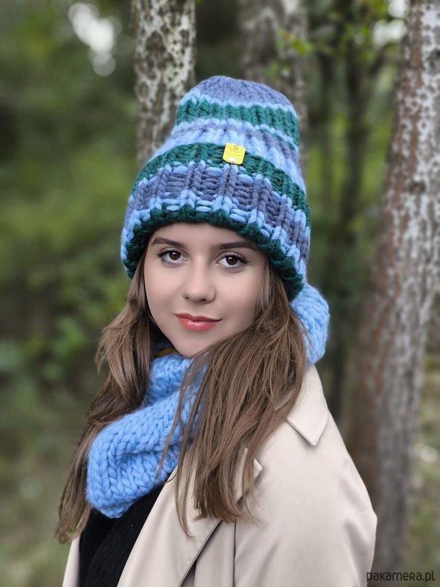 WOOLY COLOR "6"ciepła wełniana czapka w paseczki