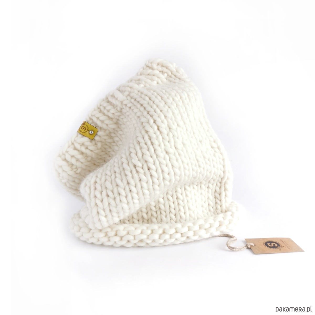 Wełniany komin w sam raz, ciaśniejszy przy szyi, luźniejszy na dole, miękko się układa i dobrze otula i chroni przed zimnem,