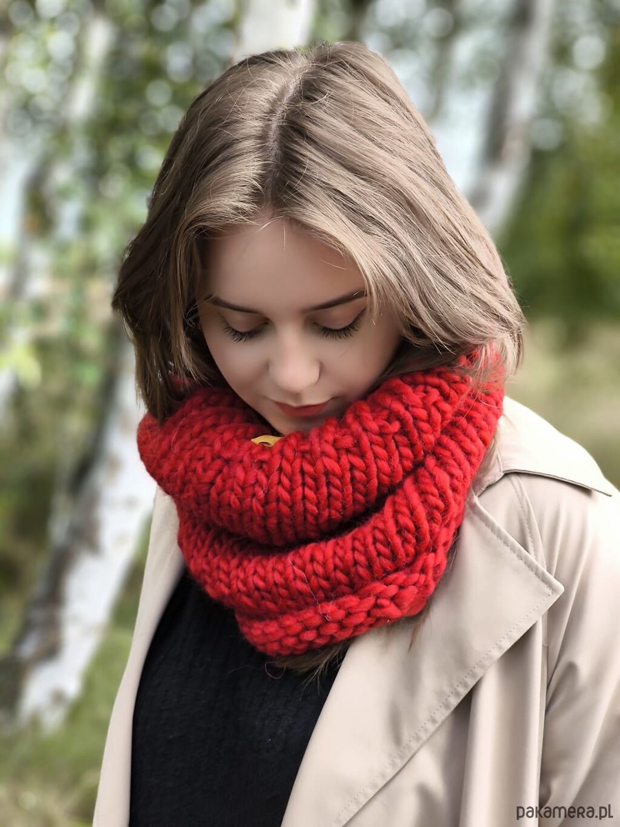 Wełniany komin w sam raz, ciaśniejszy przy szyi, luźniejszy na dole, miękko się układa i dobrze otula i chroni przed zimnem,