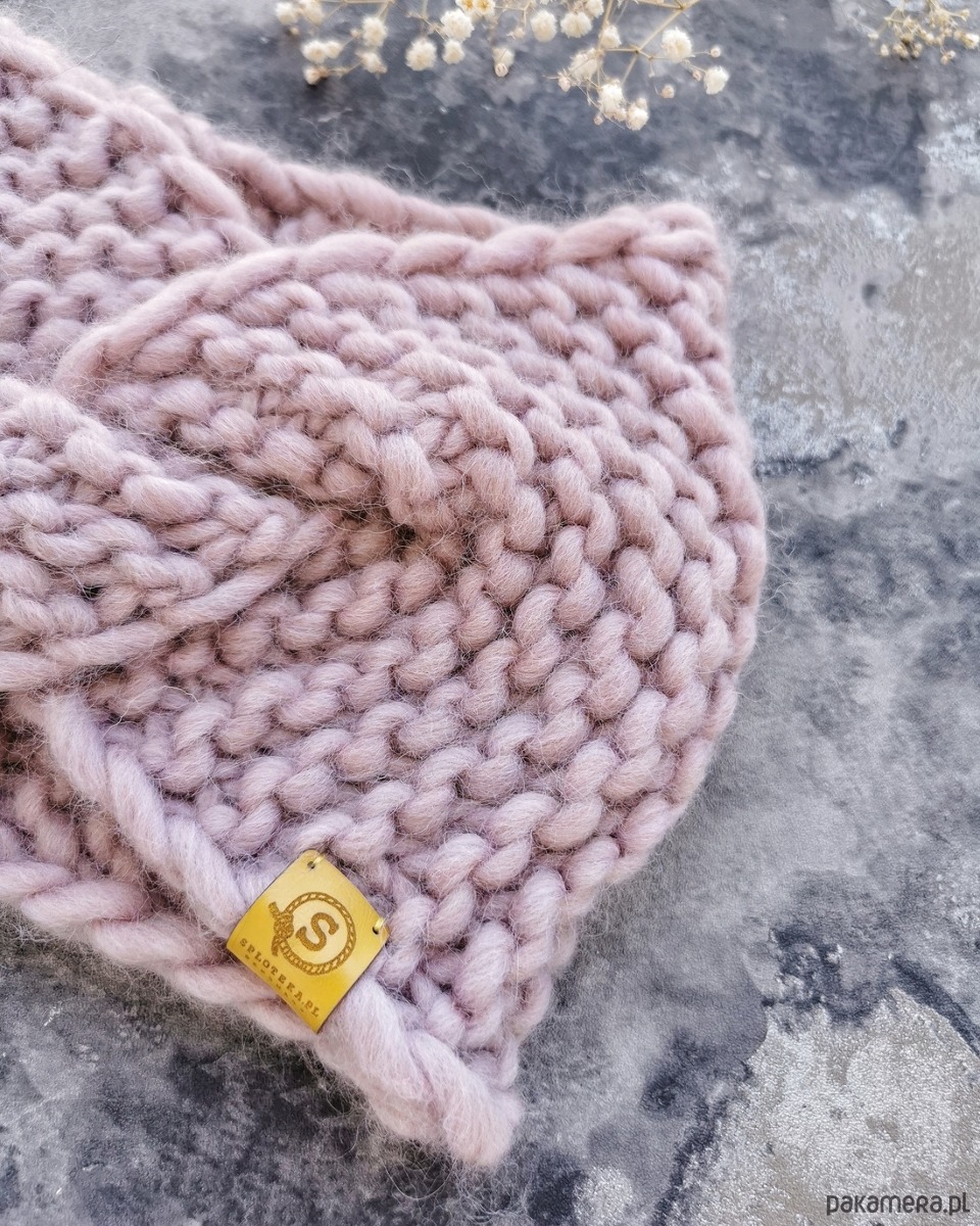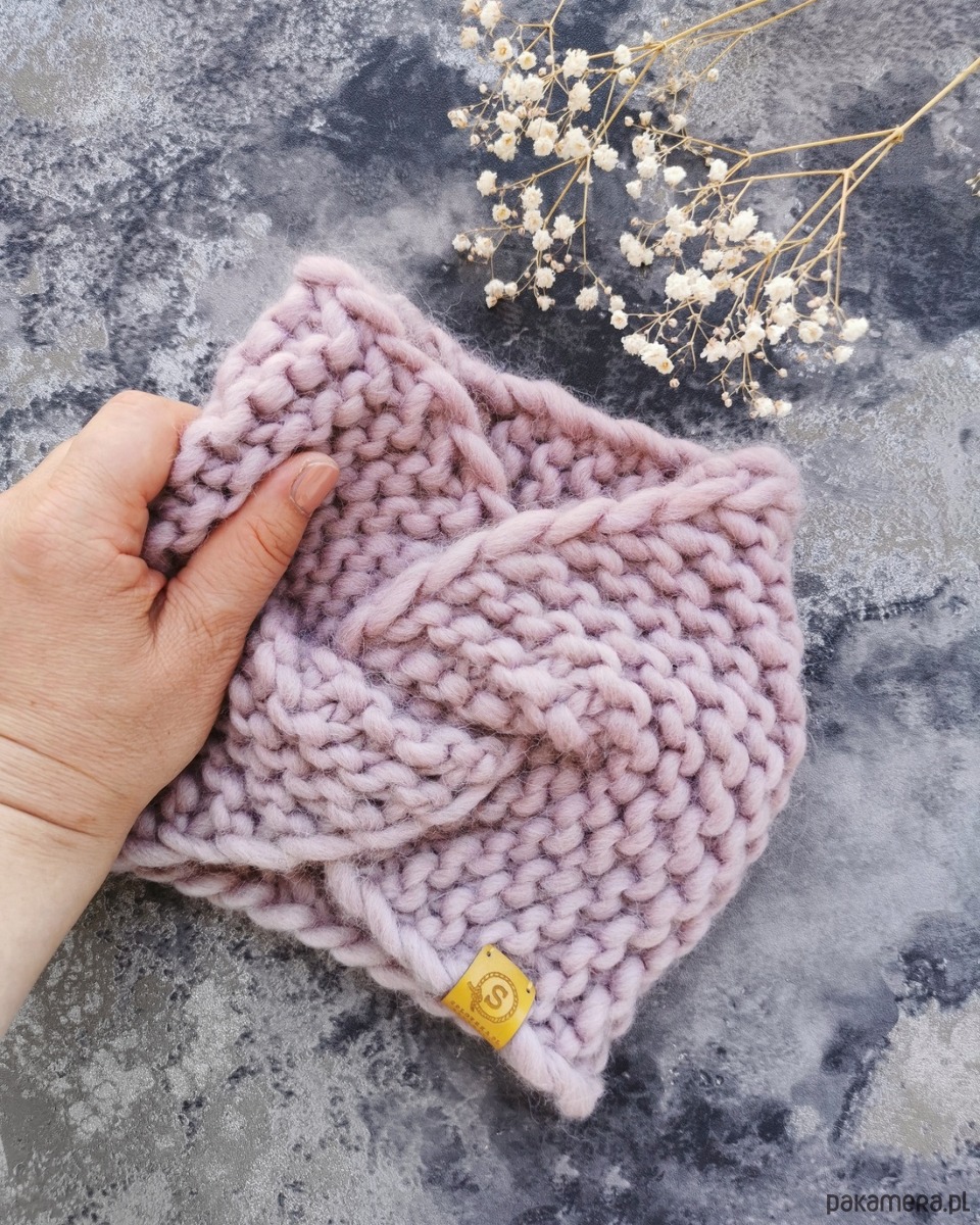 WOOLY wełniana opaska twist pudrowy róż