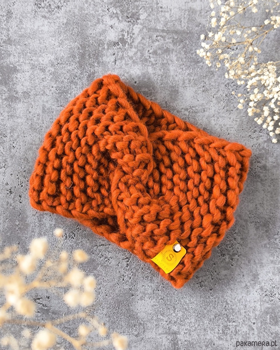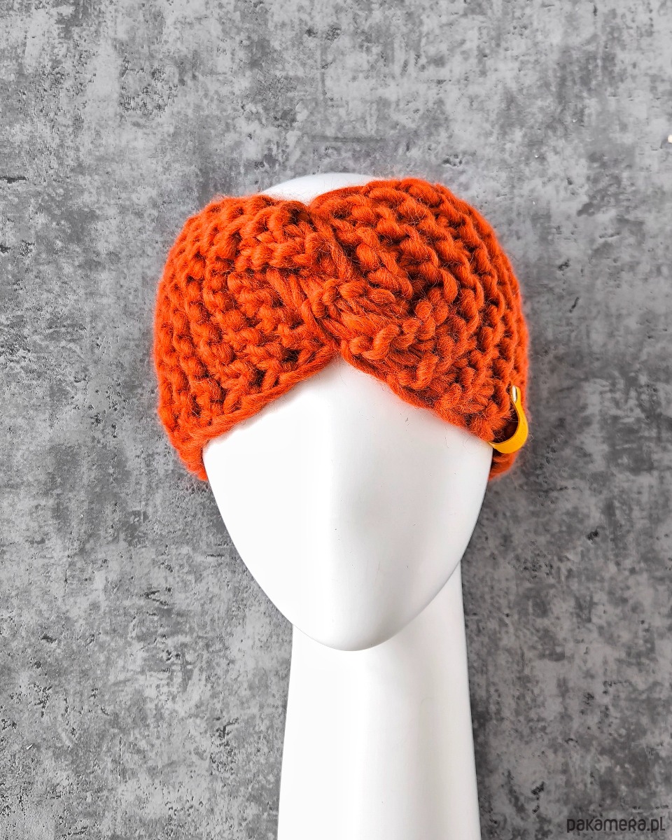 Opaska z twistem przypomina turban, okrywa prawie całą głowę zostawiając przestrzeń na włosy