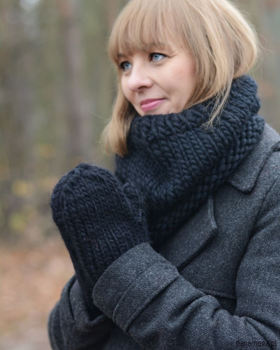 Wełniane rękawiczki na drutach z kolekcji WOOLY
