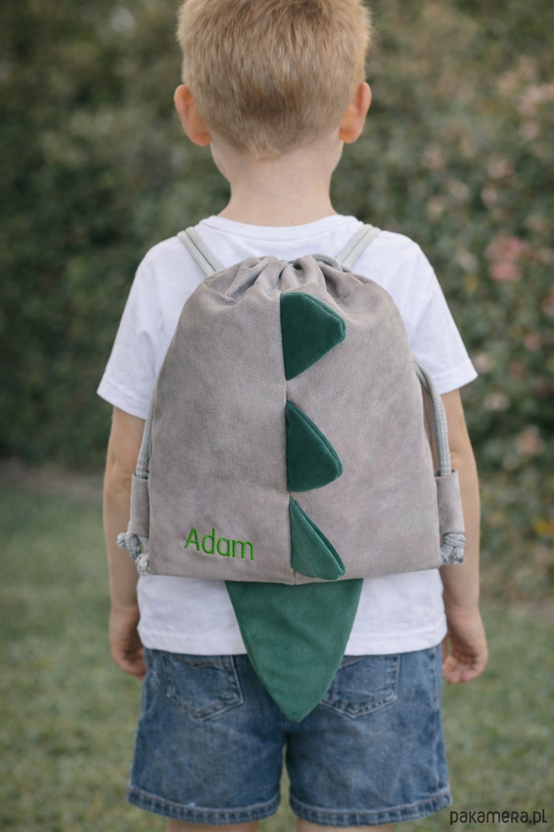 Worek dla chłopca przedszkolaka z imieniem dinosaur żłobka na dzień dziecka