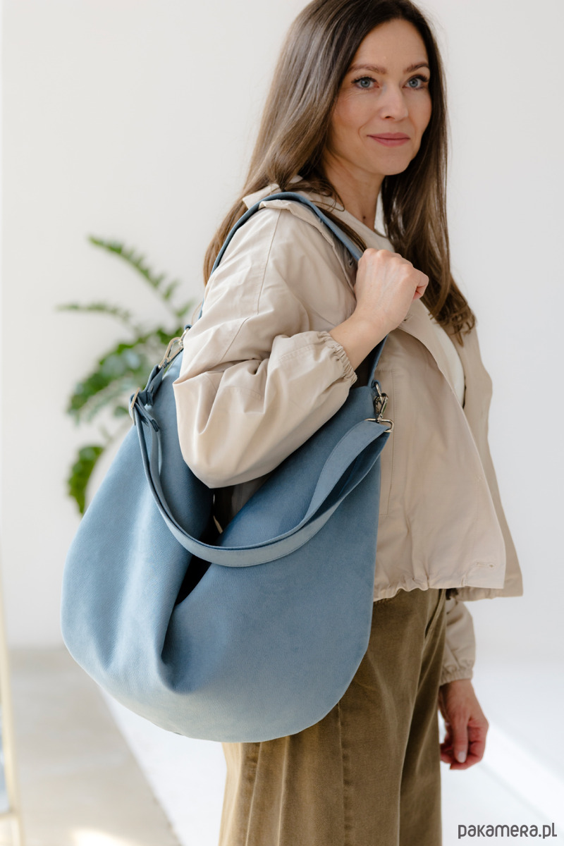 Worek hobo z nubuku ekologicznego w kolorze zimnego błękitu