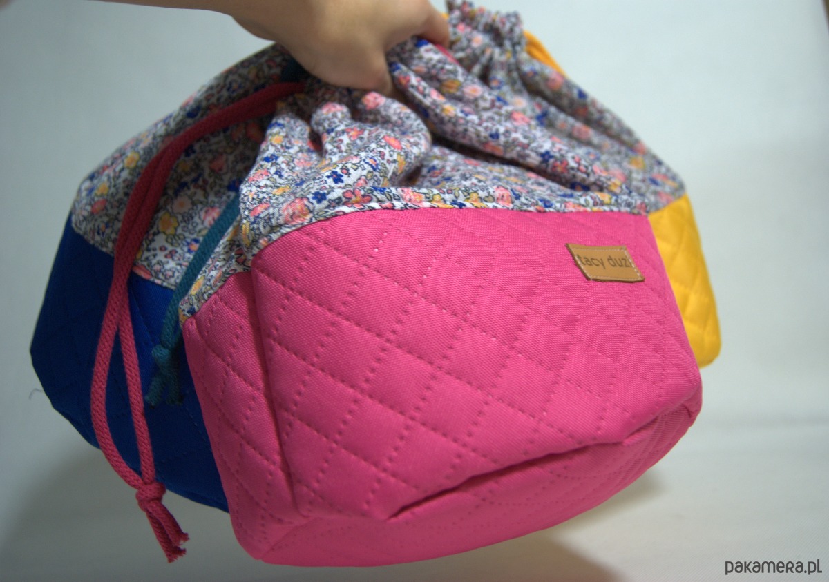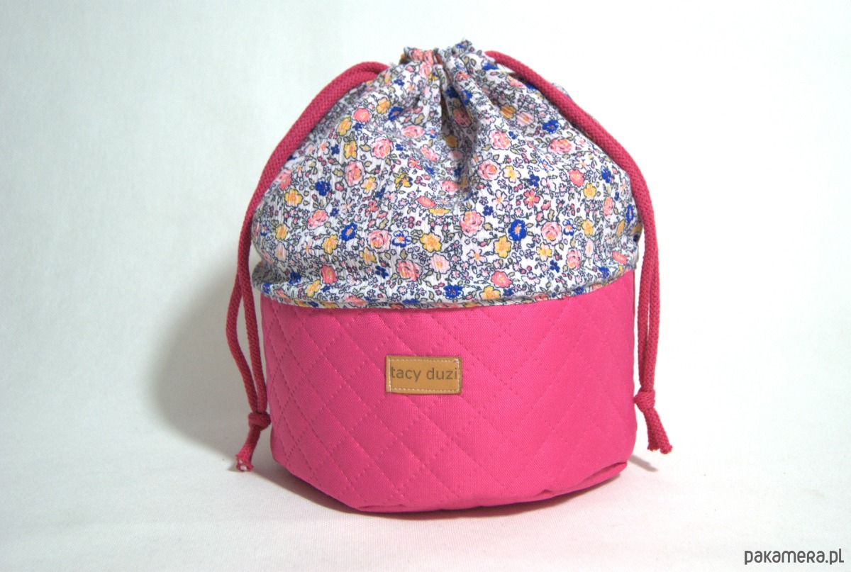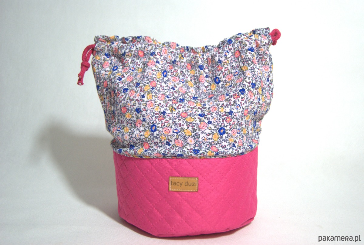 Worek-kosmetyczka duża "kolorowe kwiatuszki" różowa