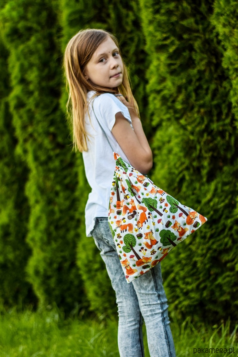 Kolorowy wzór worka na pewno zachwyci Twoje dziecko, a praktyczny bawełniany sznurek pozwoli zawiesić worek w przedszkolnej lub szkolnej szatni.