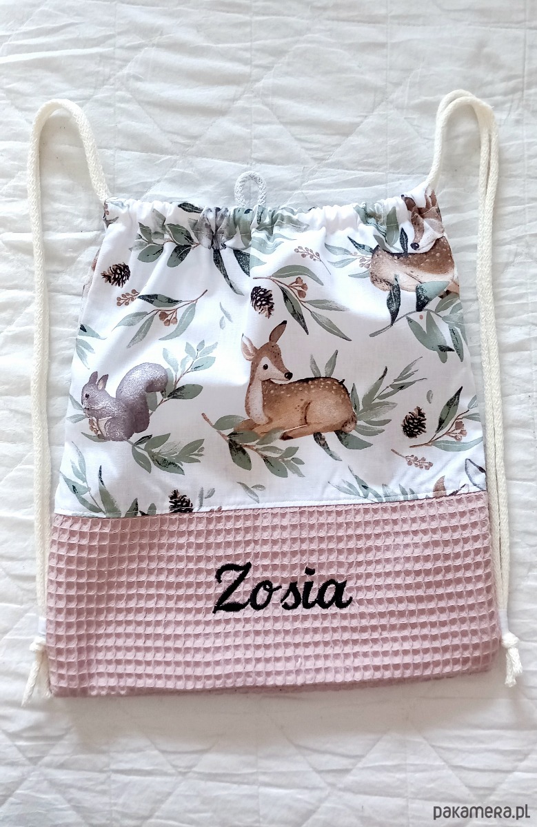 Każdy worek wykonany jest z łączonych tkanin, z bawełny oraz wafelka, na którym wykonany jest haft!