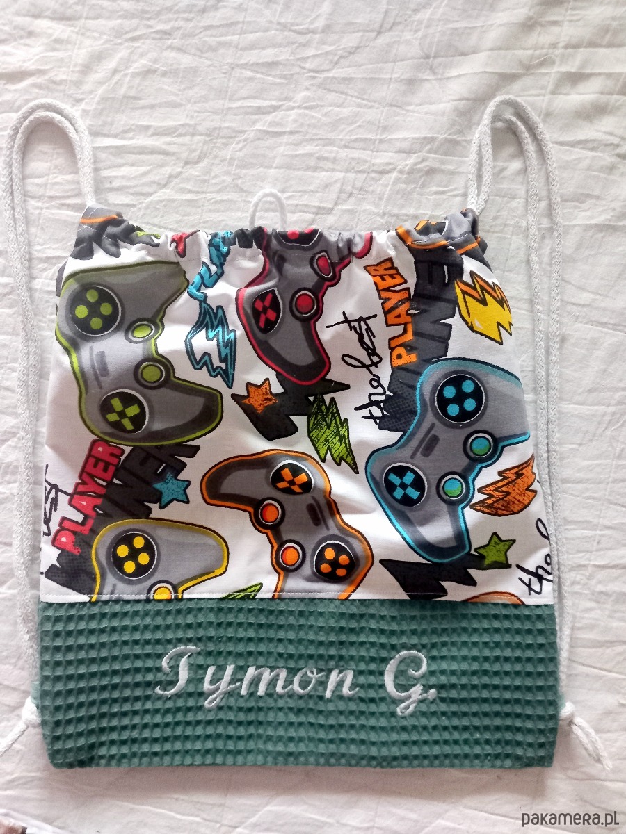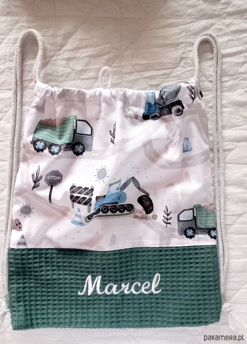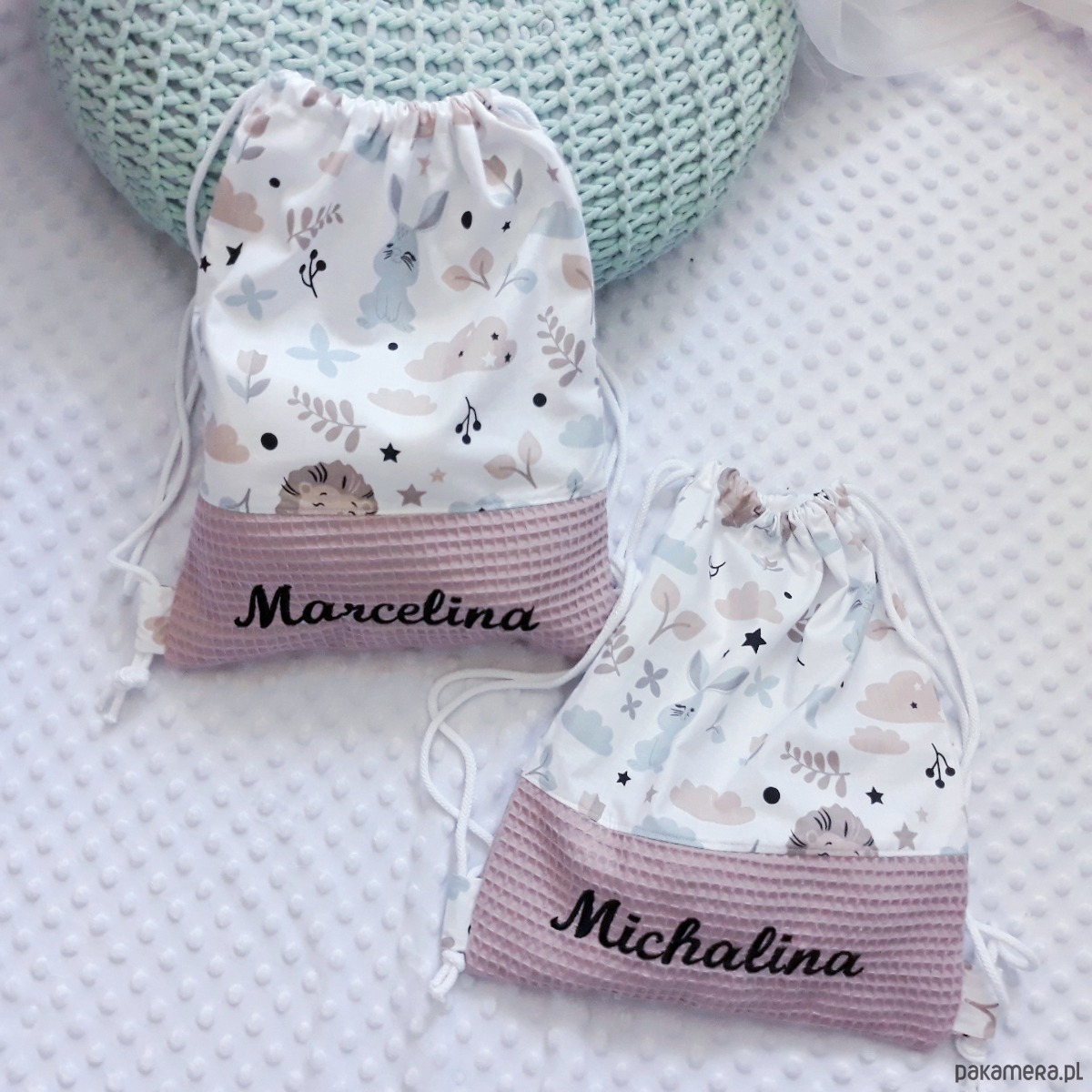 Każdy worek wykonany jest z łączonych tkanin, z bawełny oraz wafelka, na którym wykonany jest haft!
