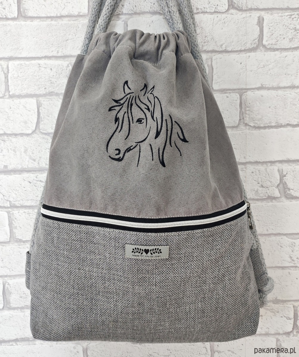 Worek z koniem z kieszonką na suwak