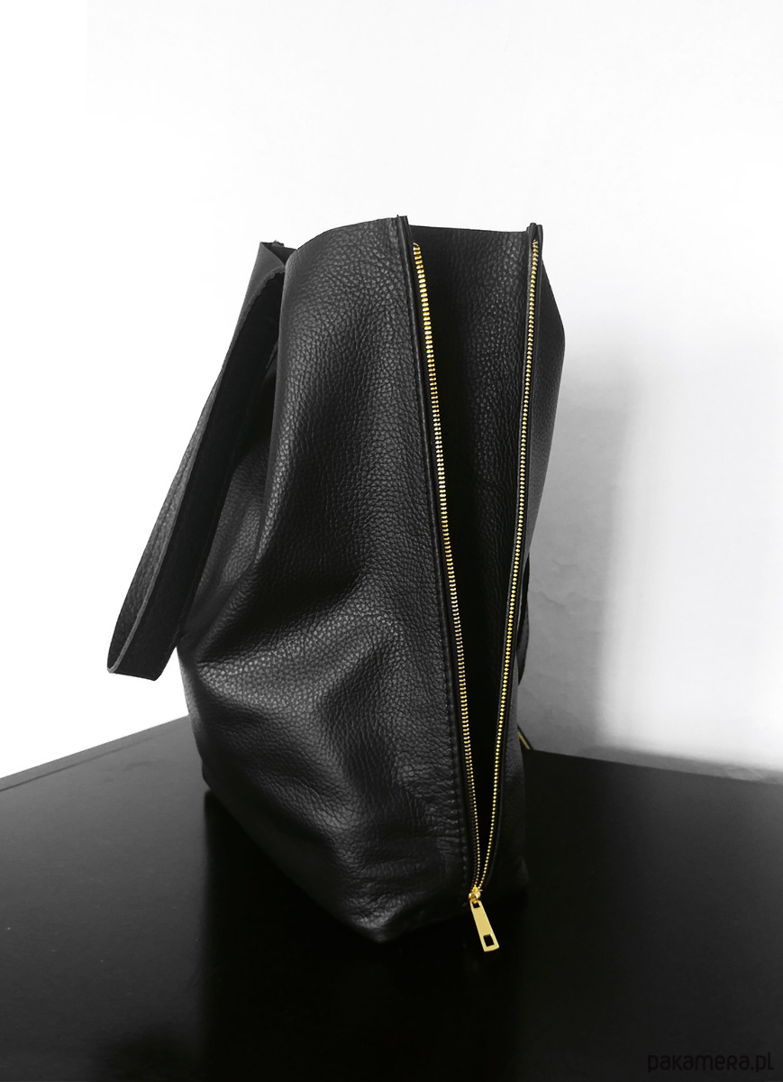 Ekskluzywna torba z najwyższej jakości naturalnej skóry licowej w kolorze czarnym.