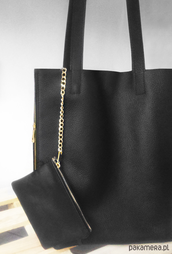 Ekskluzywna torba z najwyższej jakości naturalnej skóry licowej w kolorze czarnym.