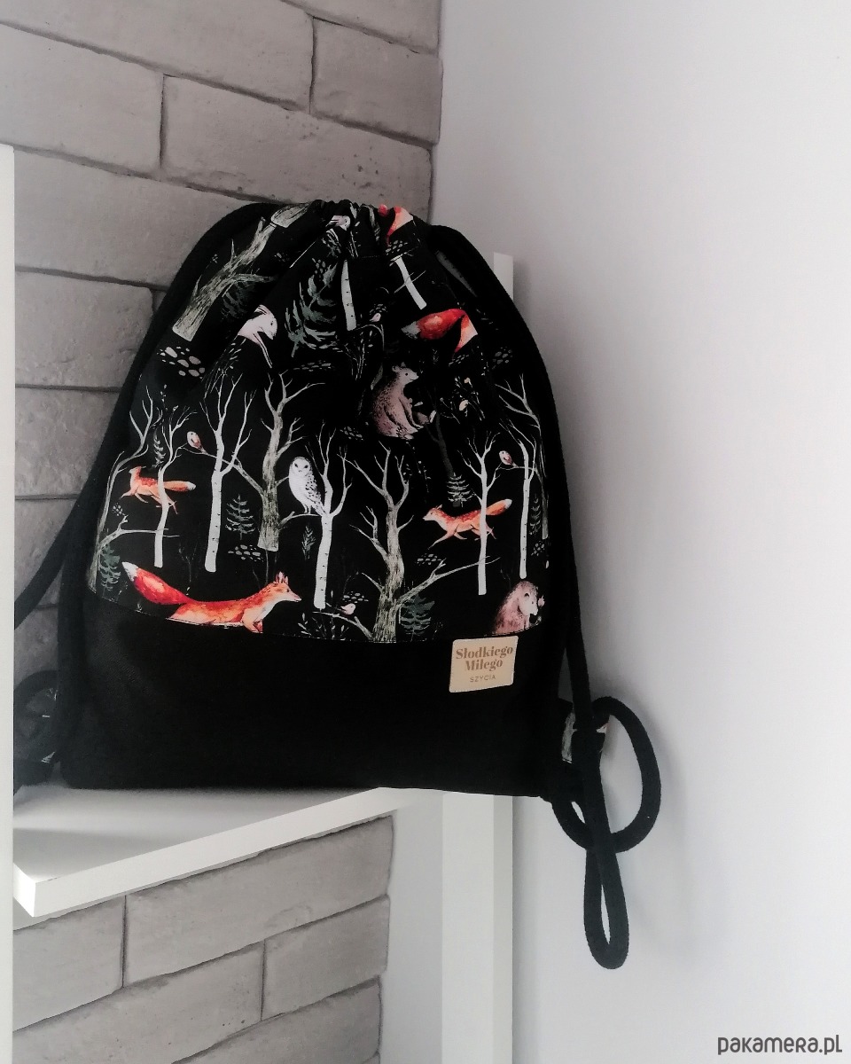 Worko-plecak wykonany z tkaniny wodoodpornej na zewnątrz i bawełnianej podszewki wewnątrz a całość ściągana jest bawełnianym sznurem.