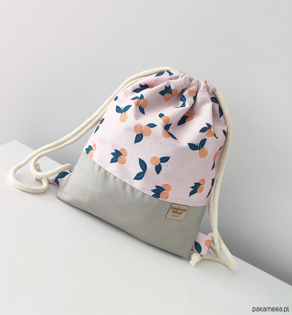 Worko-plecak wykonany z tkaniny wodoodpornej na zewnątrz i bawełnianej podszewki wewnątrz a całość ściągana jest bawełnianym sznurem.
