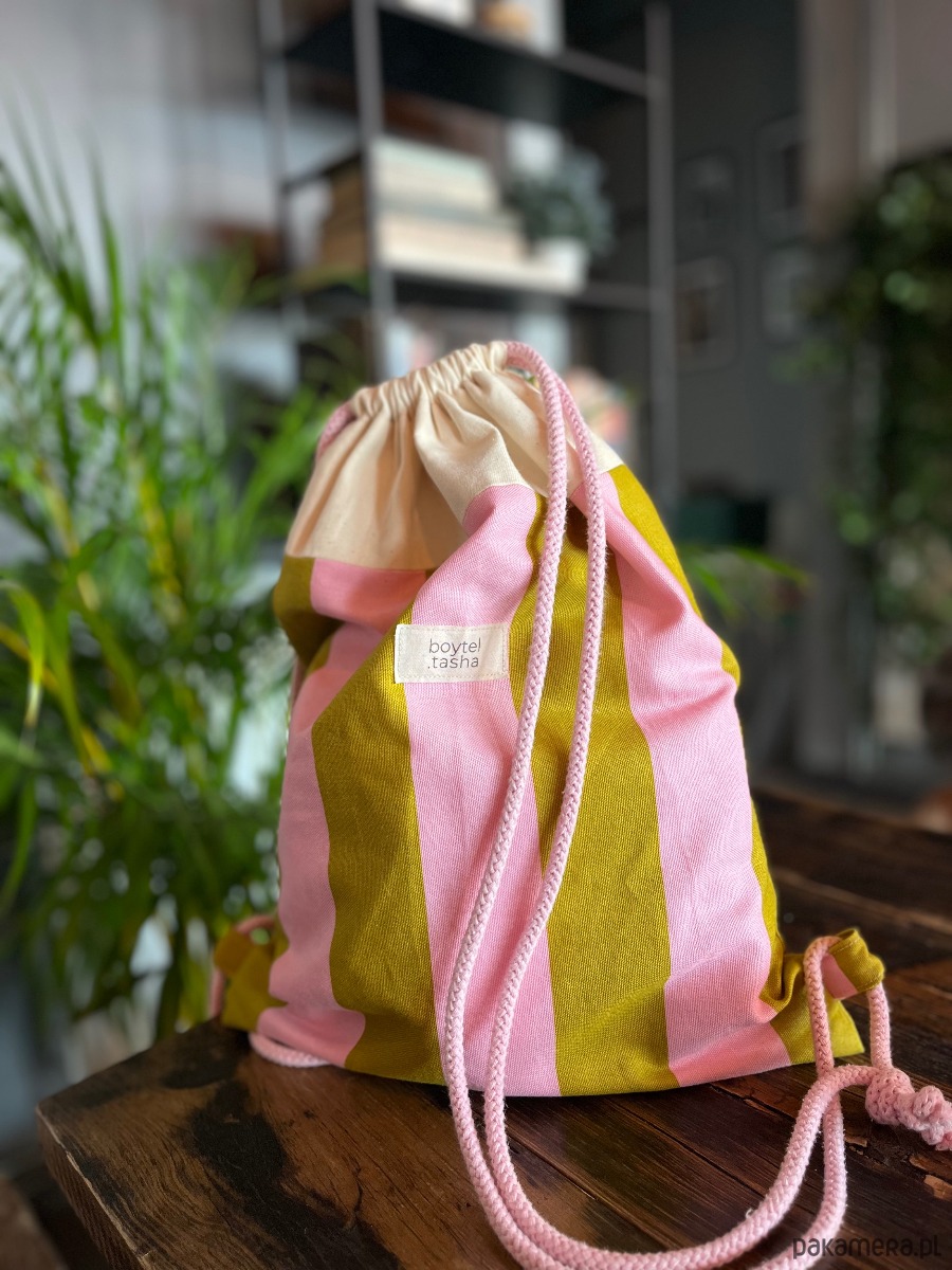 Workoplecak w różowe paski