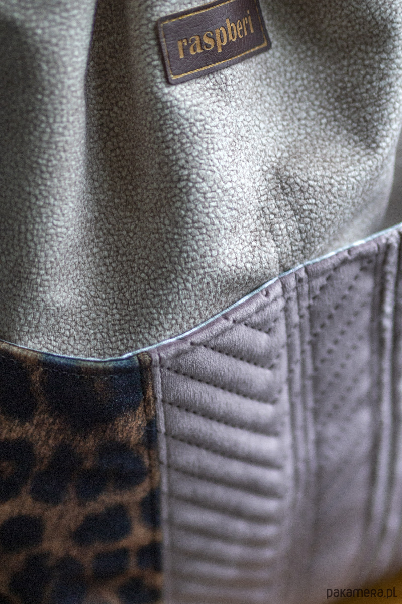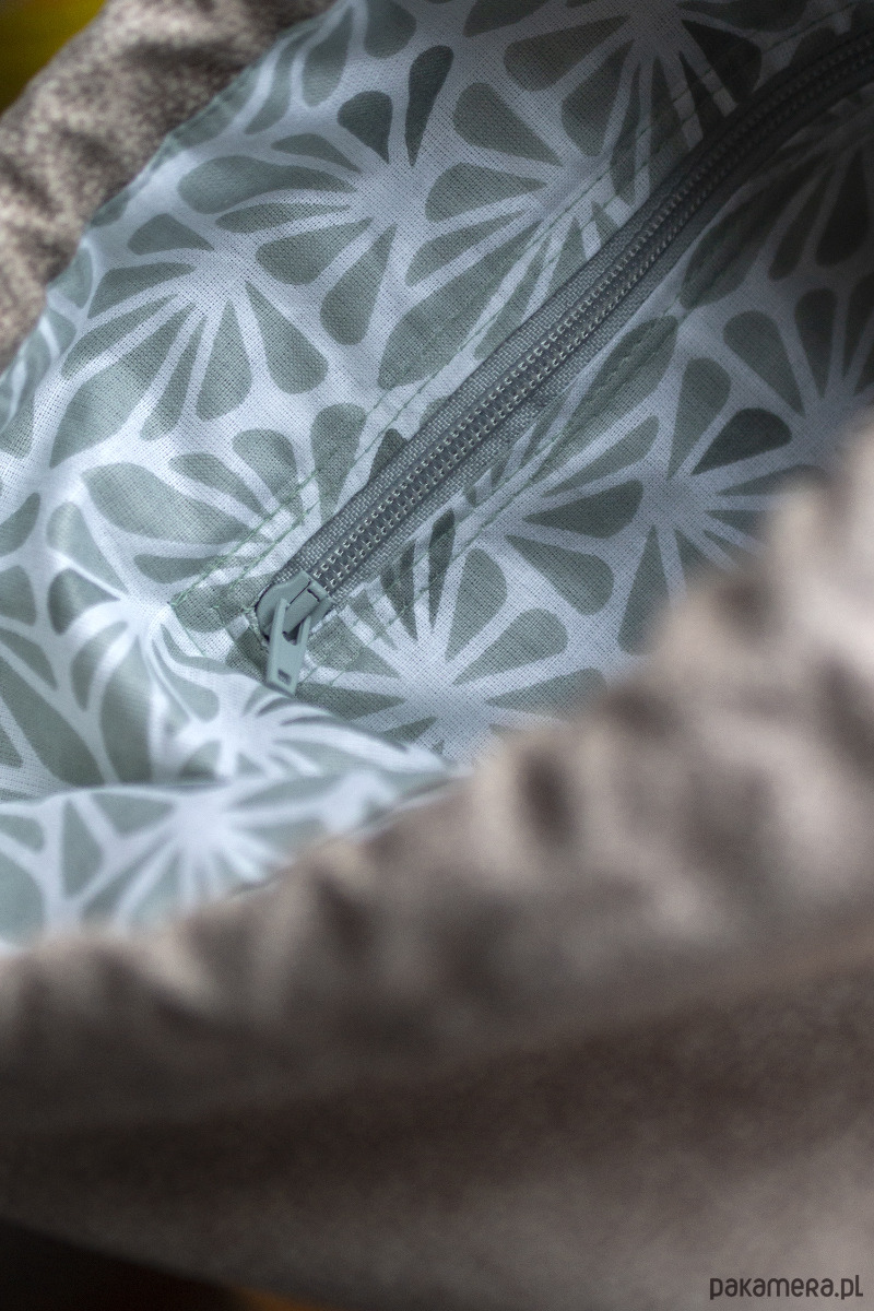 Dół tworzy dodatkowe miejsce na przechowywanie rzeczy - z przodu dwie kieszenie (np. na butelkę), z tyłu jedną duża kieszeń (idealna na tablet). Wykonane z różnych kawałków tkanin tworzących wspólnie ciekawą wizualnie całość.