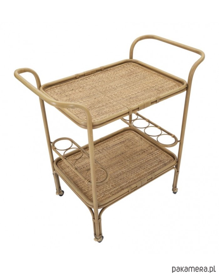 Gratka dla fanów stylu boho! Wózek-barek wykonany z metalu oraz plecionego rattanu. Kolor naturalny. Prezentuje się rewelacyjnie.