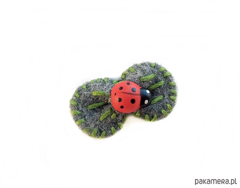 Ręcznie wykonana butonierka z biedronką mocowana jest na pin.