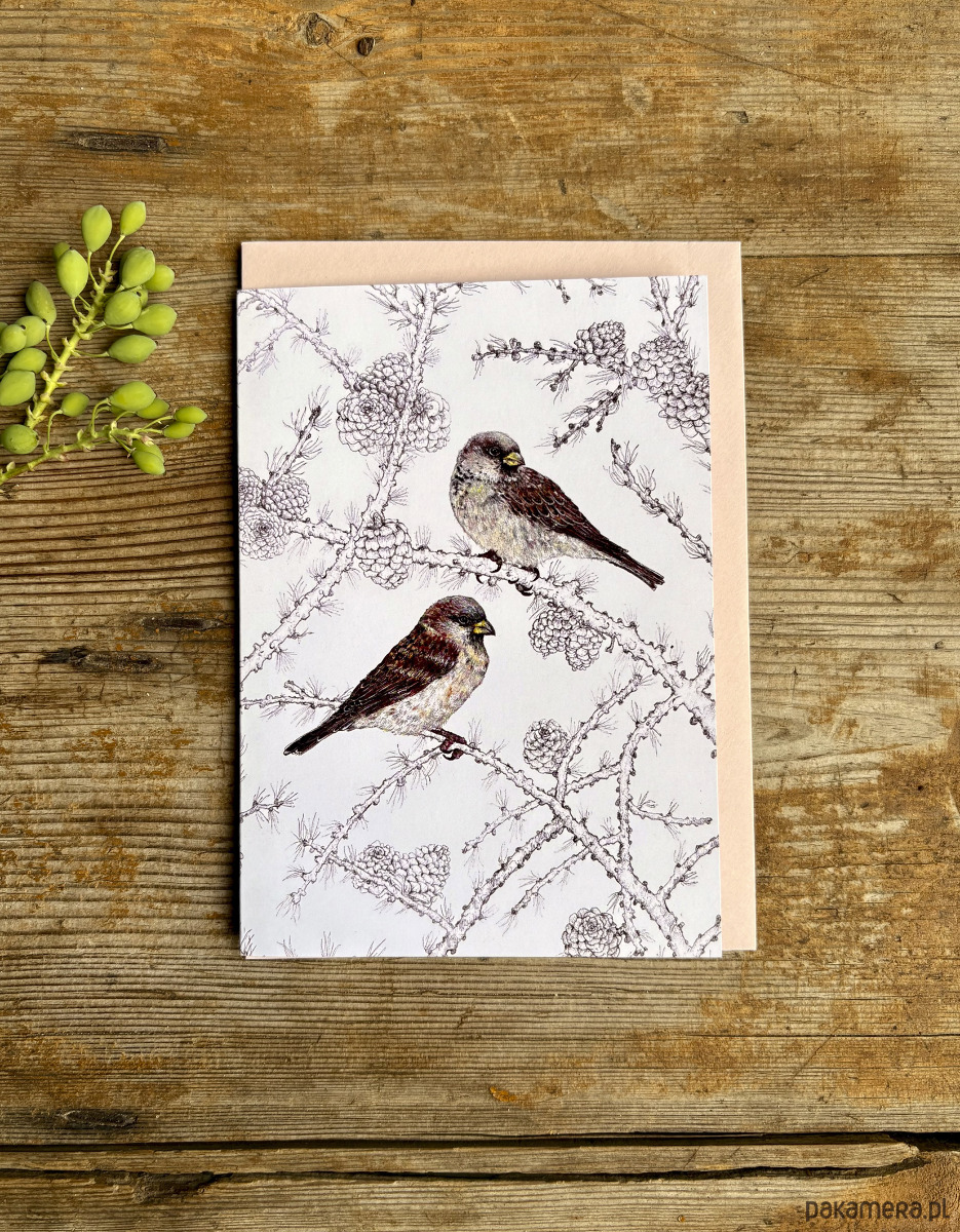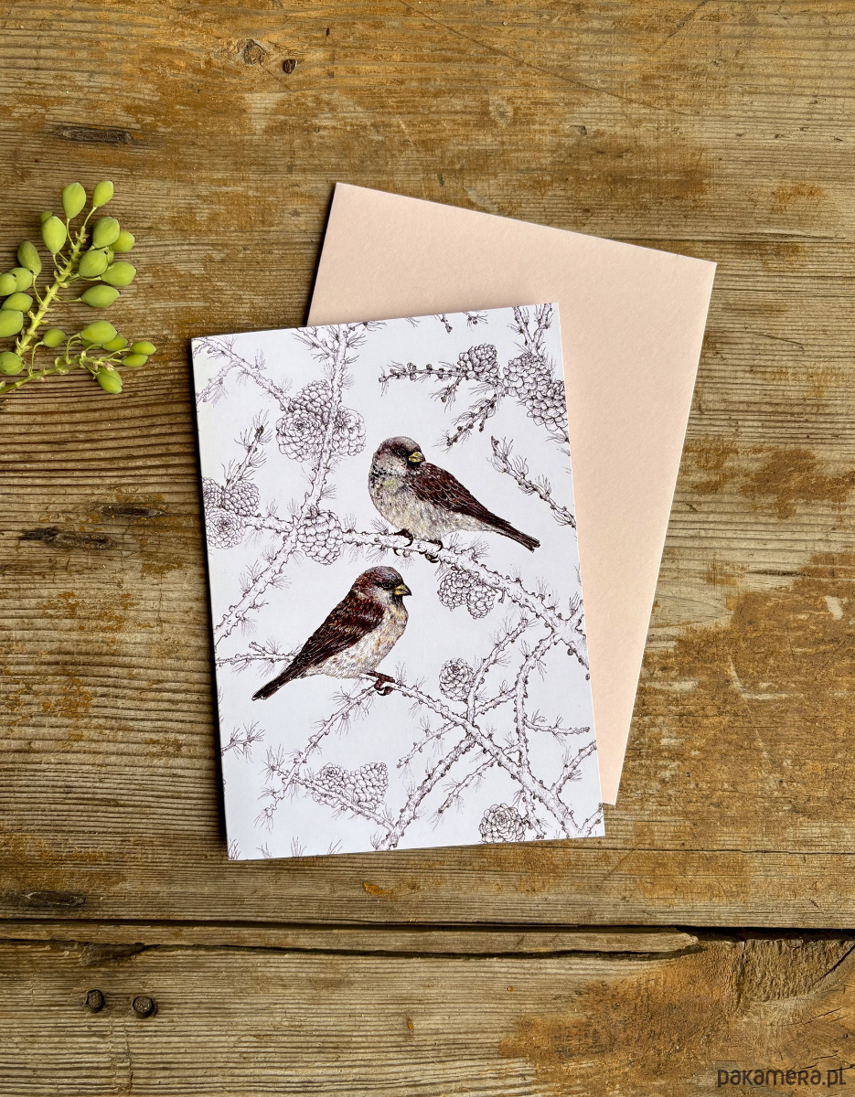 Wróbelki- Kartka- Grafika- Ilustracja- Ptaki
