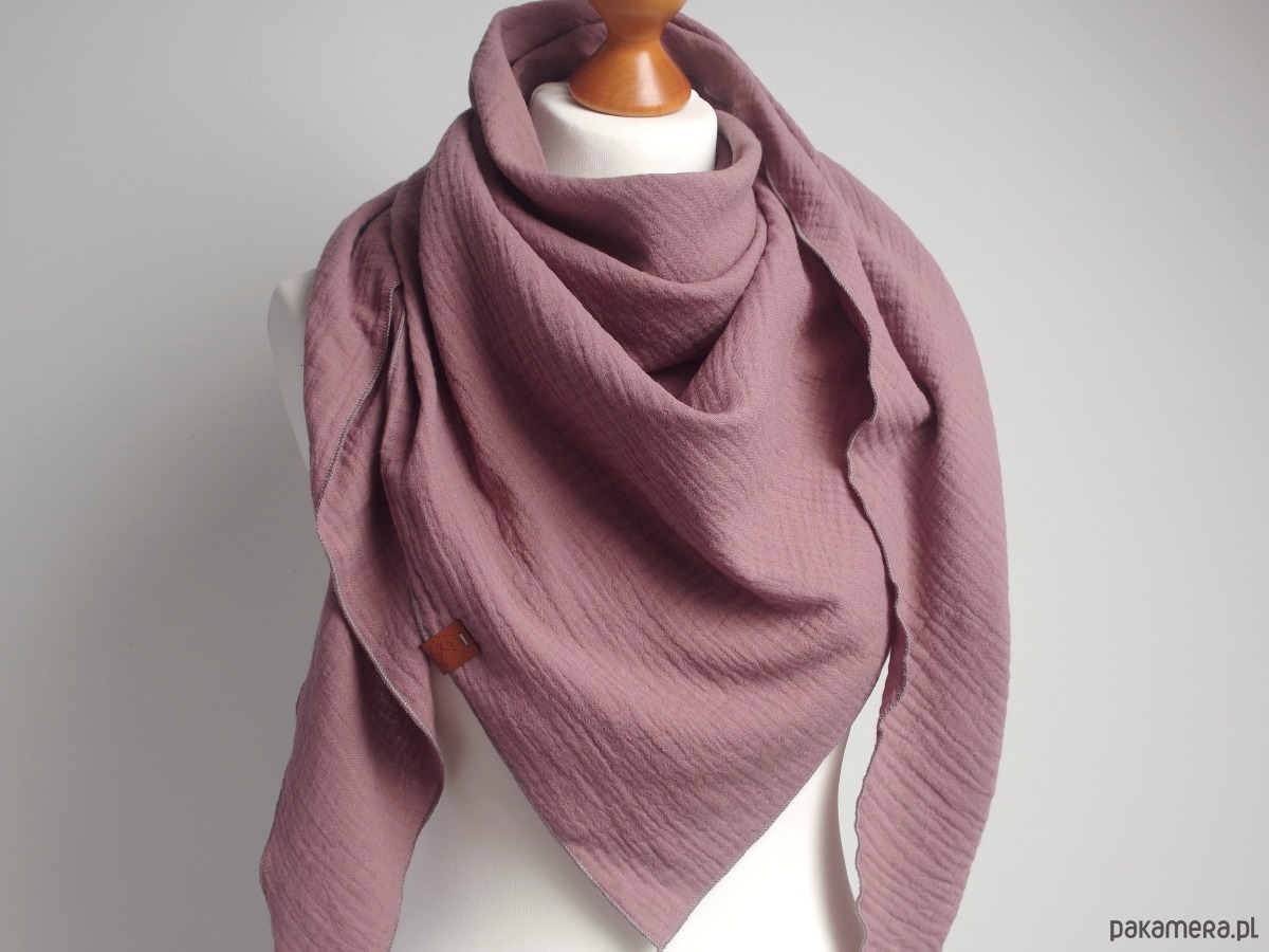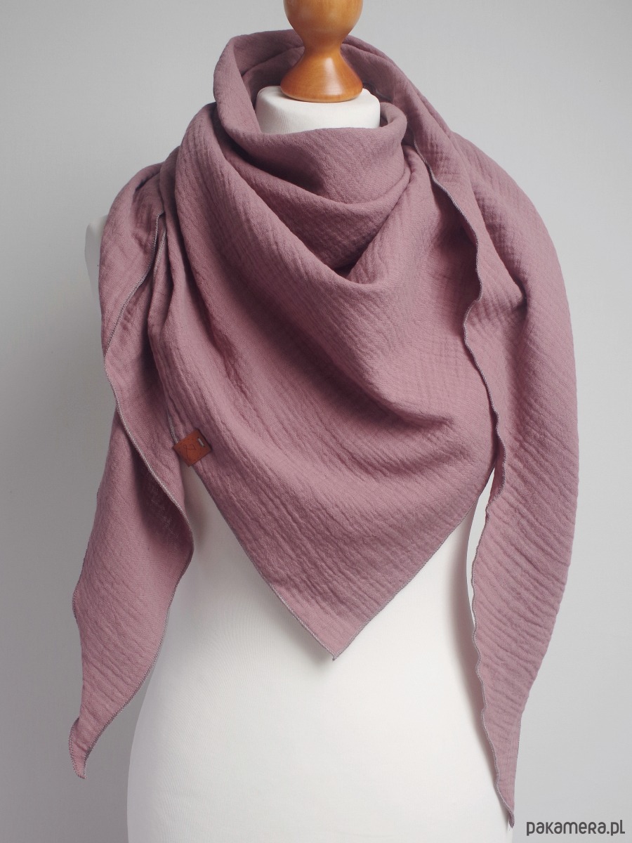 Lekka i delikatna, bardzo przyjemna w dotyku chusta damska muślinowa w kolorze wrzosowym. Chusta została uszyta z delikatnej tkaniny bawełnianej - muślinu, który jest bardzo przyjemny dla skóry.