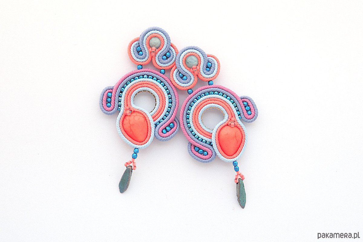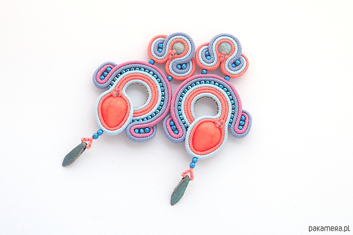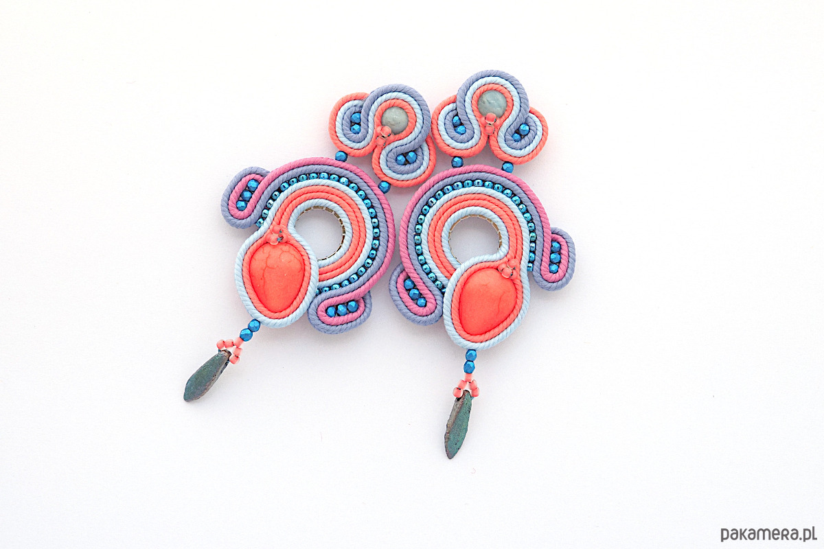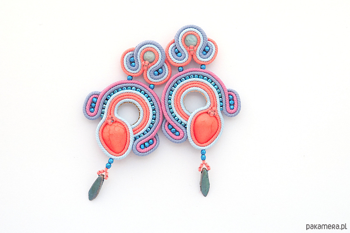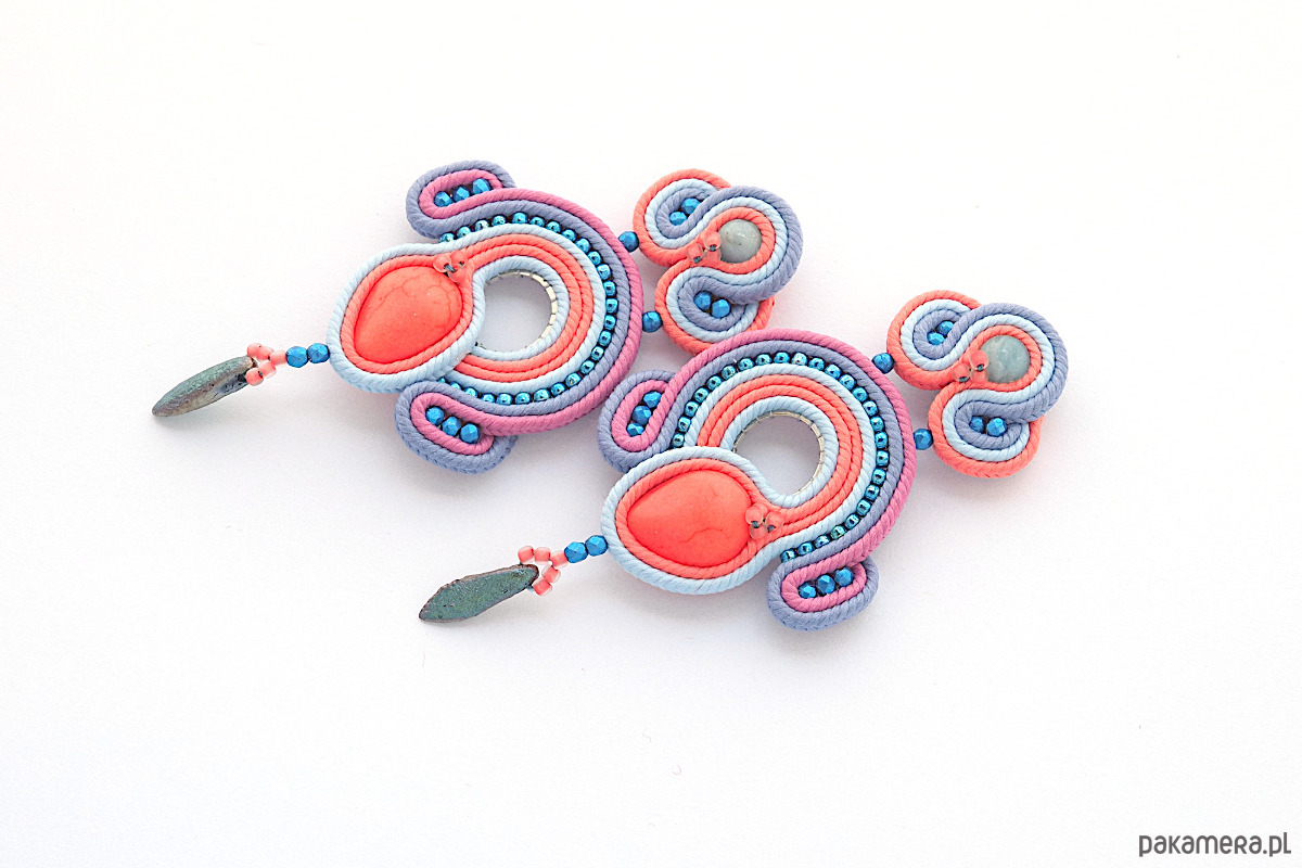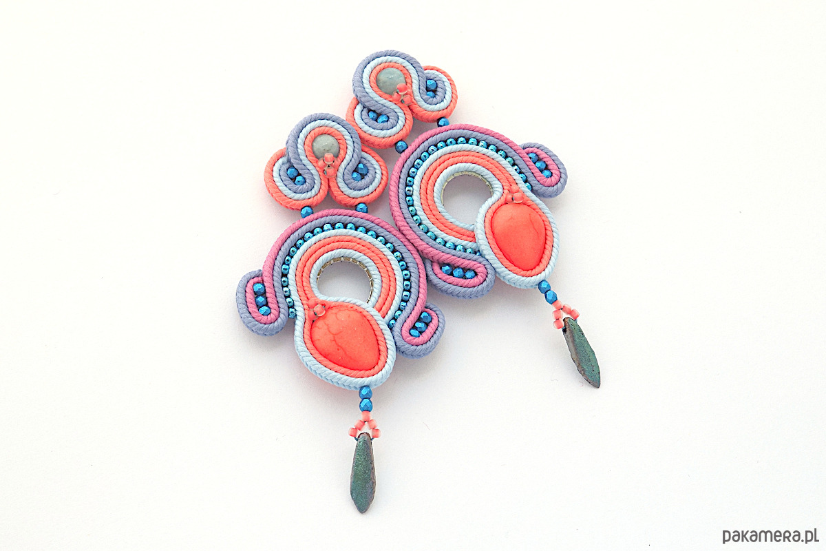 Materiał: kaboszon, koraliki Fire Polish i Toho, sznurek sutasz