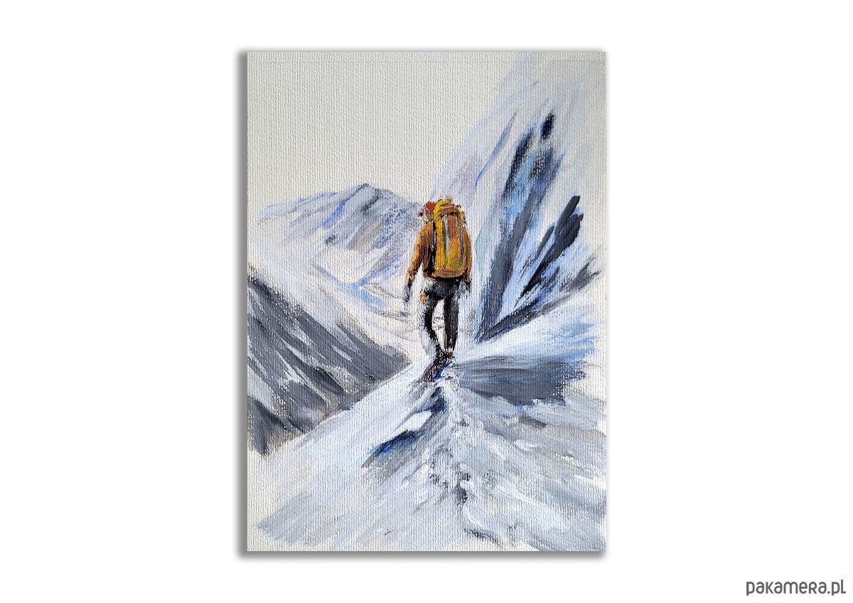 Wspinaczka, zima, góry. Obraz ręcznie malowany