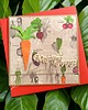 wykonana na bazie grubego kartonu EKO-kraft (100% makulatury), ozdobiona wzorzystym papierem, przestrzenną marchewką (wykonana własnoręcznie z elementów wyciętych z kolorowych papierów), napisem przestrzennym z beermaty (dwuwarstwowy). przewiązana sznurkiem jutowym.