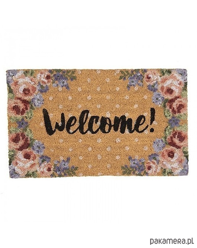Wycieraczka wykonana ze strzyżonego włókna kokosowego w kolorze naturalnym. Z nadrukiem. Podkład PCV. Solidne wykonanie.