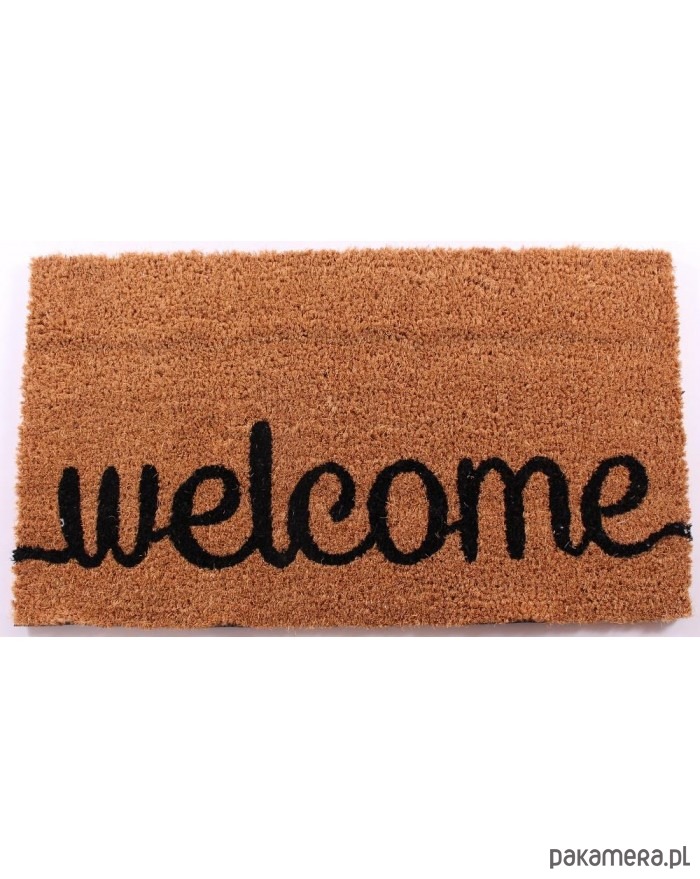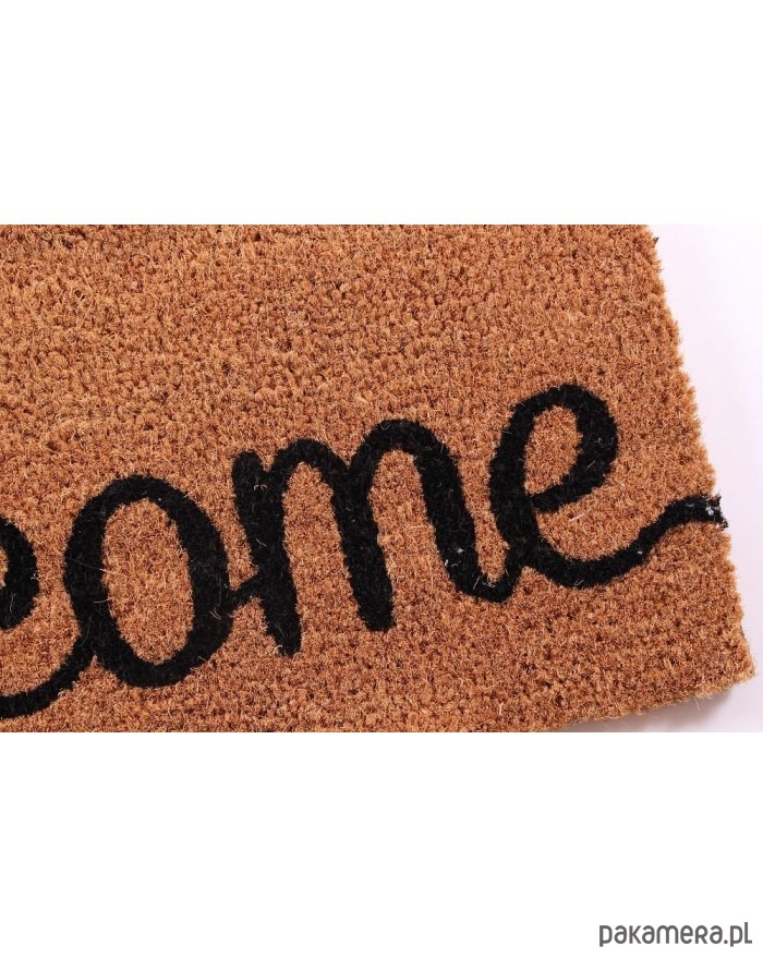 Wycieraczka wejściowa wykonana ze strzyżonego włókna kokosowego z hasłem w kolorze czarnym. Podkład PCV. Solidne wykonanie. Rewelacyjny pomysł na niebanalny prezent.