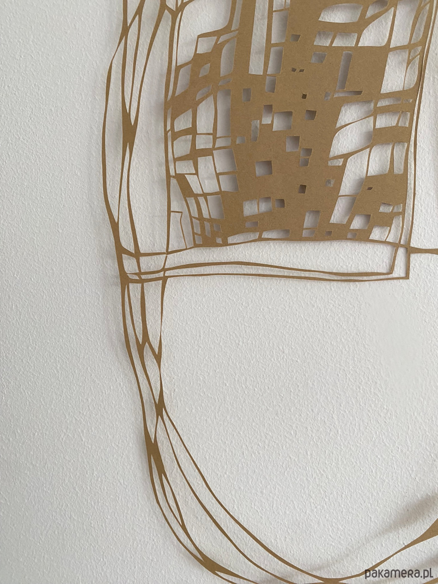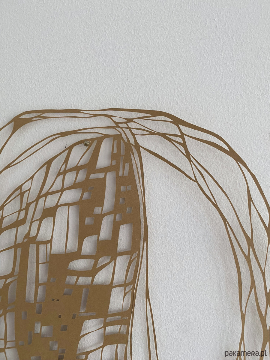 Jest to ręcznie wycinana skalpelem praca, stworzona na bazie bardzo ogólnego szkicu. Podczas pracy lubię odchodzić od pierwotnego rysunku i wycinać swobodnie, bez trzymania się początkowego planu – ta wolność daje mi energię i sprawia, że mogę z przyjemnością poświęcić wiele godzin na misterne wycinanie detali.