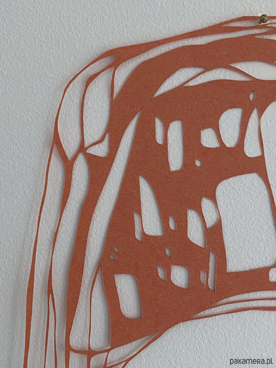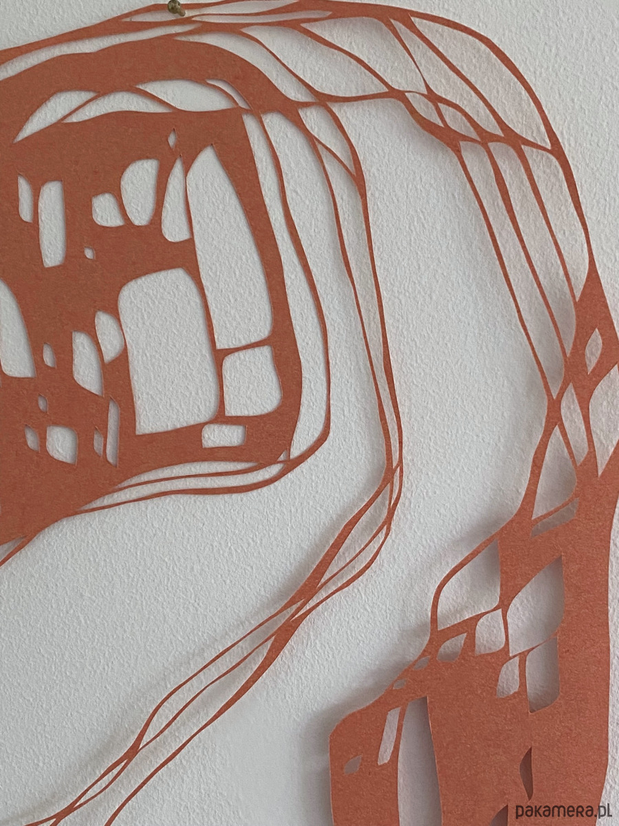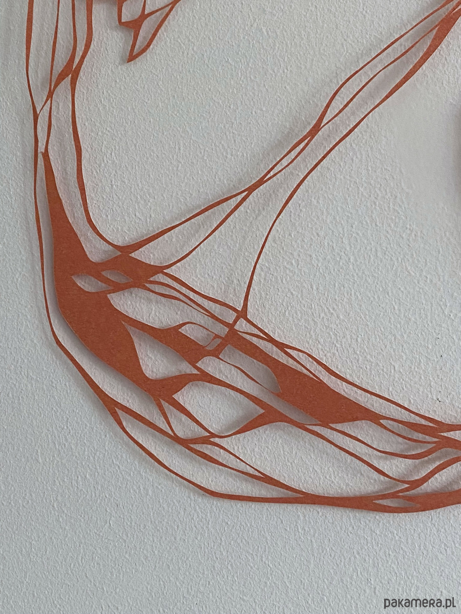 Jest to ręcznie wycinana skalpelem praca, stworzona na bazie bardzo ogólnego szkicu. Podczas pracy lubię odchodzić od pierwotnego rysunku i wycinać swobodnie, bez trzymania się początkowego planu – ta wolność daje mi energię i sprawia, że mogę z przyjemnością poświęcić wiele godzin na misterne wycinanie detali.