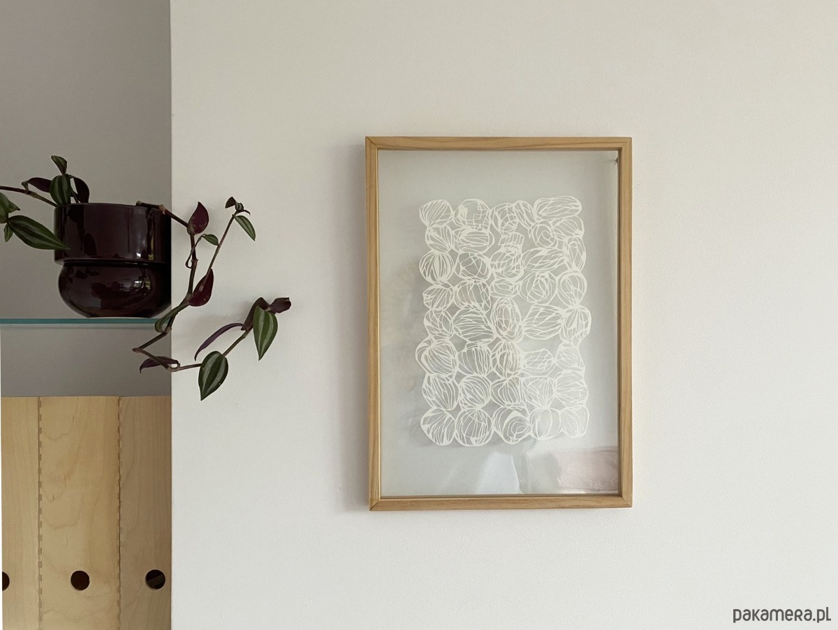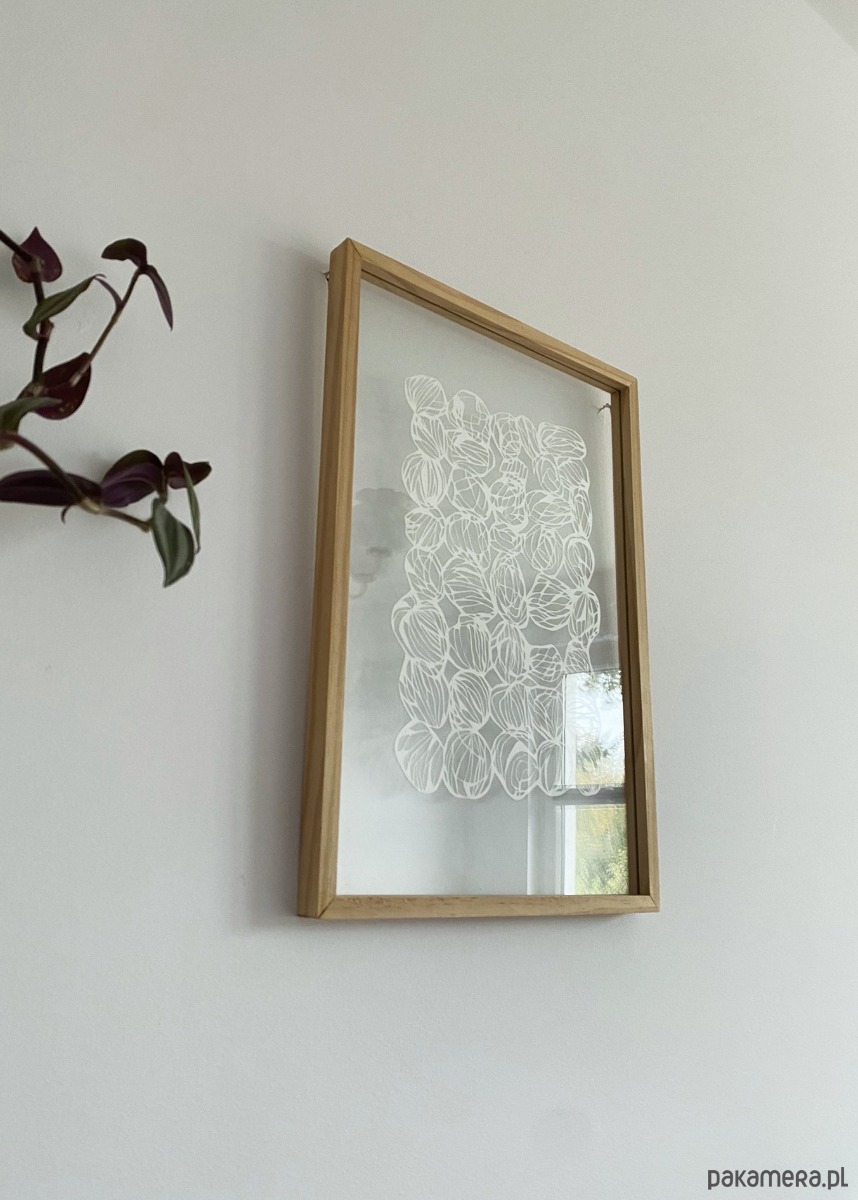 Praca NIEOPRAWIONA - pięknie zaprezentuje się w nowoczesnym wnętrzu, wyeksponowana w ramie z podwójnego szkła na białym tle.