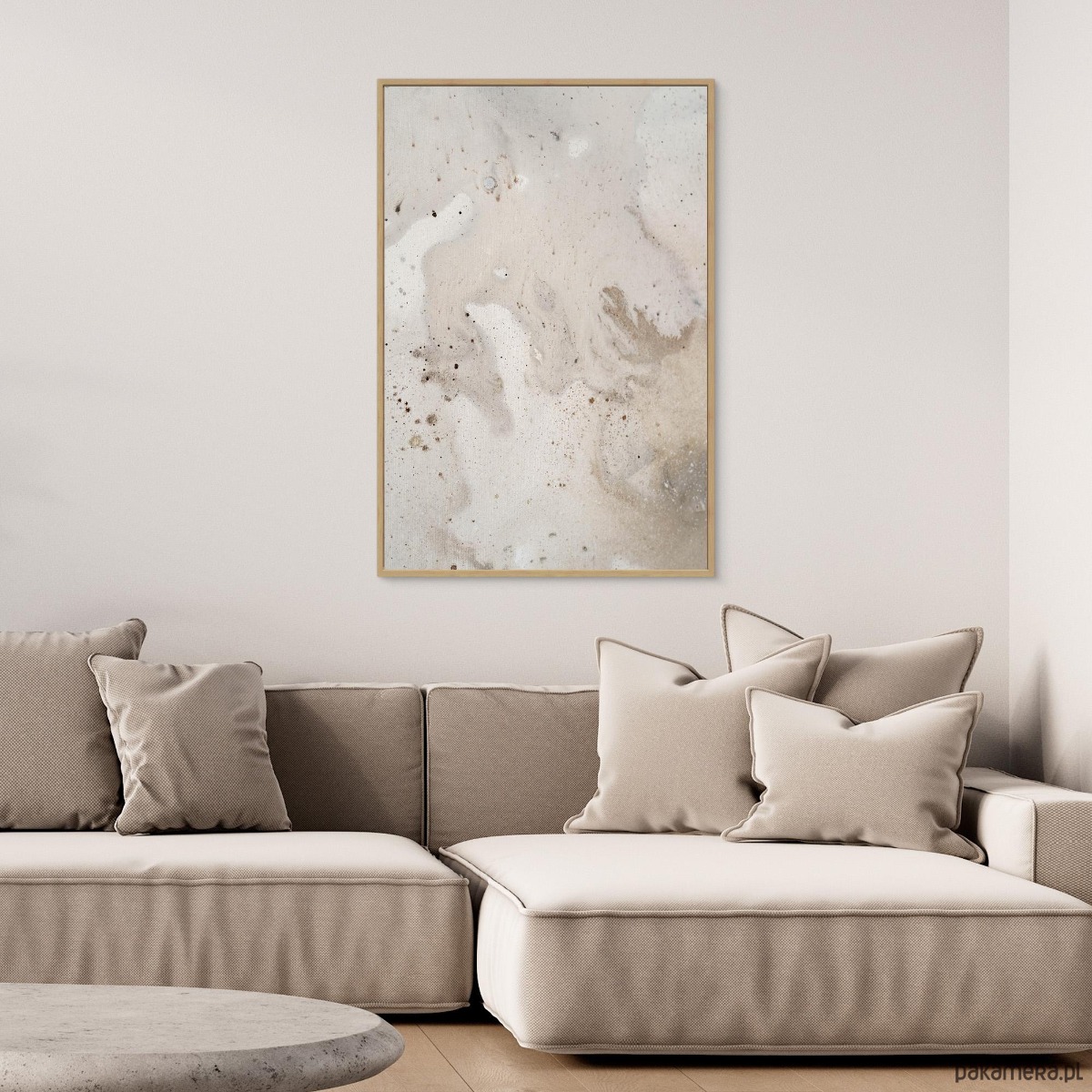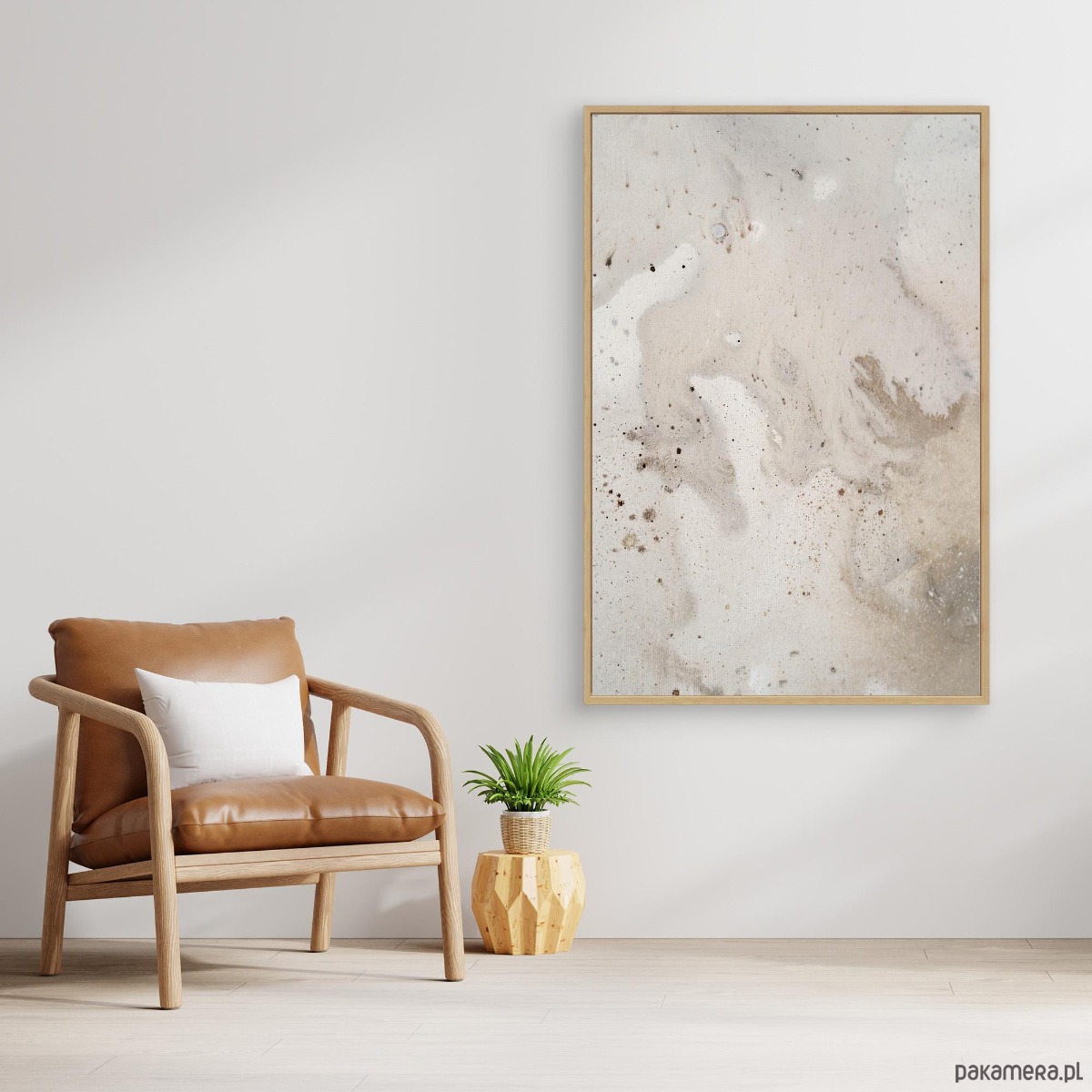 To obraz pełen spokoju i ciepła, utrzymany w kolorach ziemi, inspirowany estetyką japandi i wabi-sabi. Łączy prostotę, naturalność i harmonię, dzięki czemu doskonale odnajduje się w nowoczesnych, minimalistycznych wnętrzach.