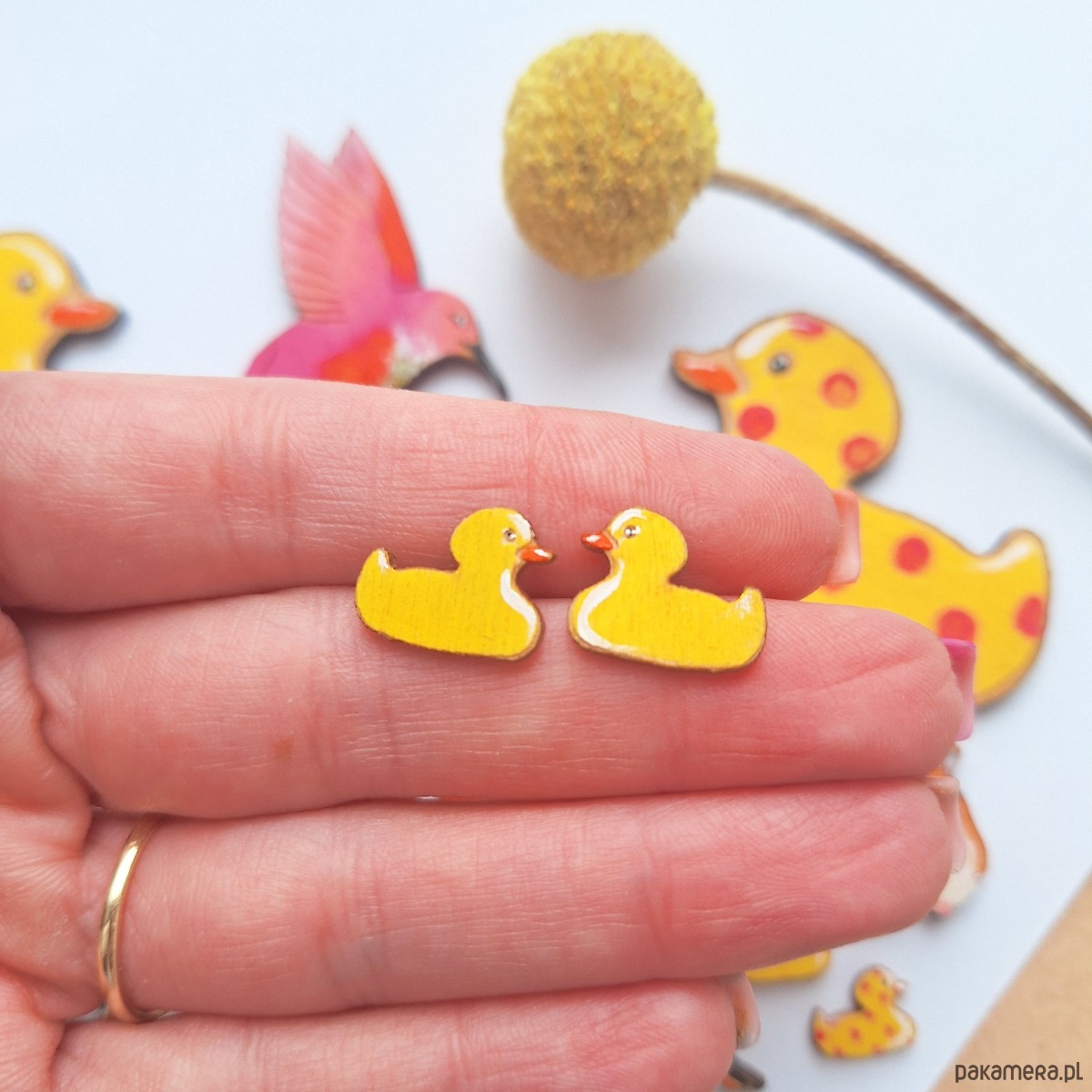 Lekkie kolczyki-sztyfty wykonane na podstawie autorskiego rysunku. Zrobione z drewna i lakierowane. Każda para będzie niepowtarzalna. Wielkość ok 1cm długości. Sztyfty nie uczulą, bo są z silikonu!