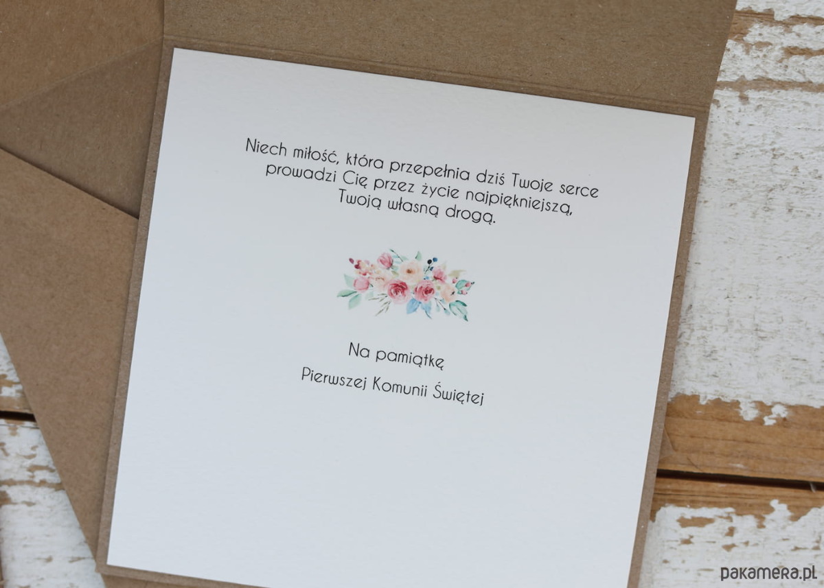 Wyjątkowa kartka komunijna ręcznie robiona pamiątka komunii - prezent dla dziewczynki + gotowe najpiękniejsze życzenia komunijne