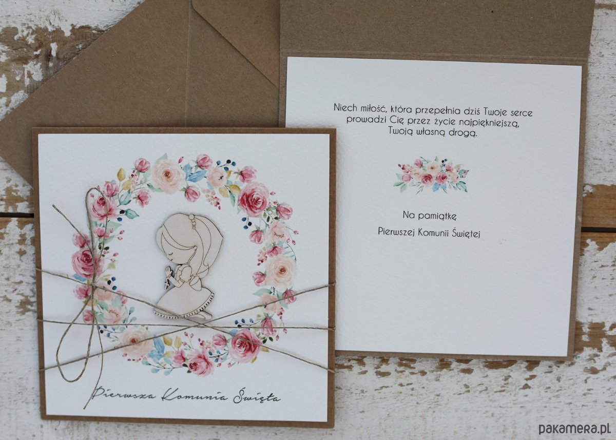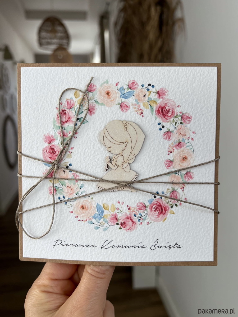 Wyjątkowa kartka komunijna ręcznie robiona pamiątka komunii - prezent dla dziewczynki + gotowe najpiękniejsze życzenia komunijne