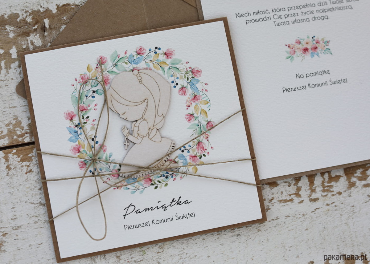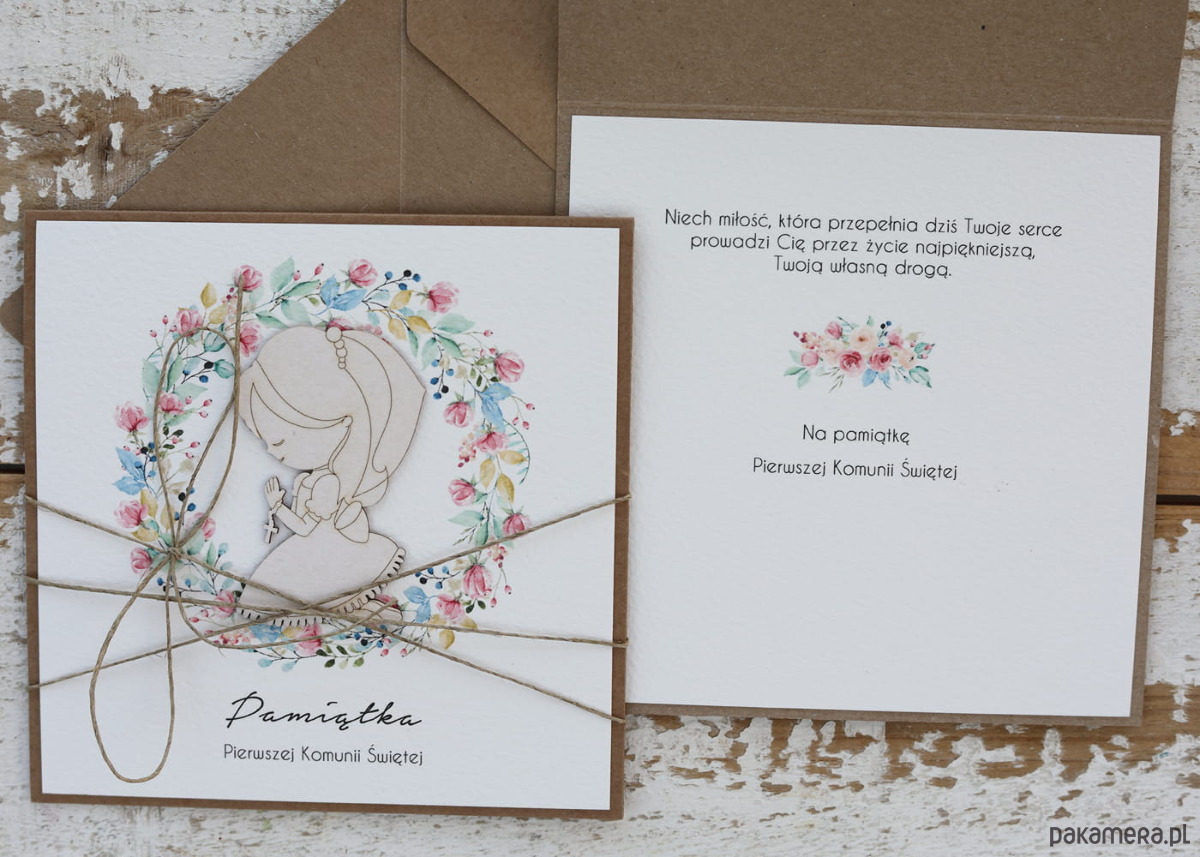 Wyjątkowa kartka na komunię, pamiątka komunii - prezent dla dziewczynki + naj