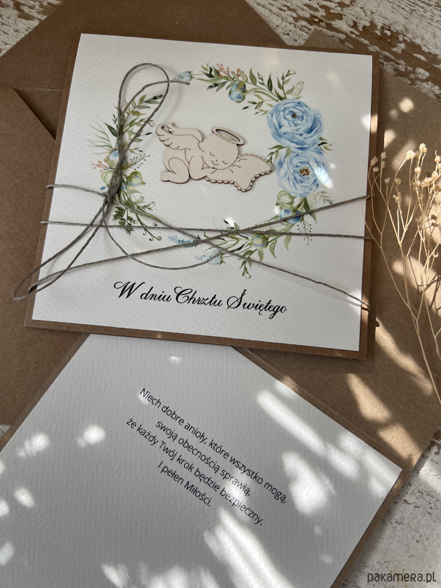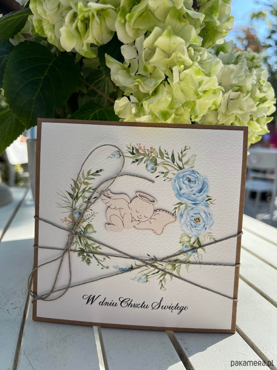 Wyjątkowa kartka ręcznie robiona na chrzest święty dla chłopca, prezent/pamiątka chrztu + najpiękniejsze życzenia