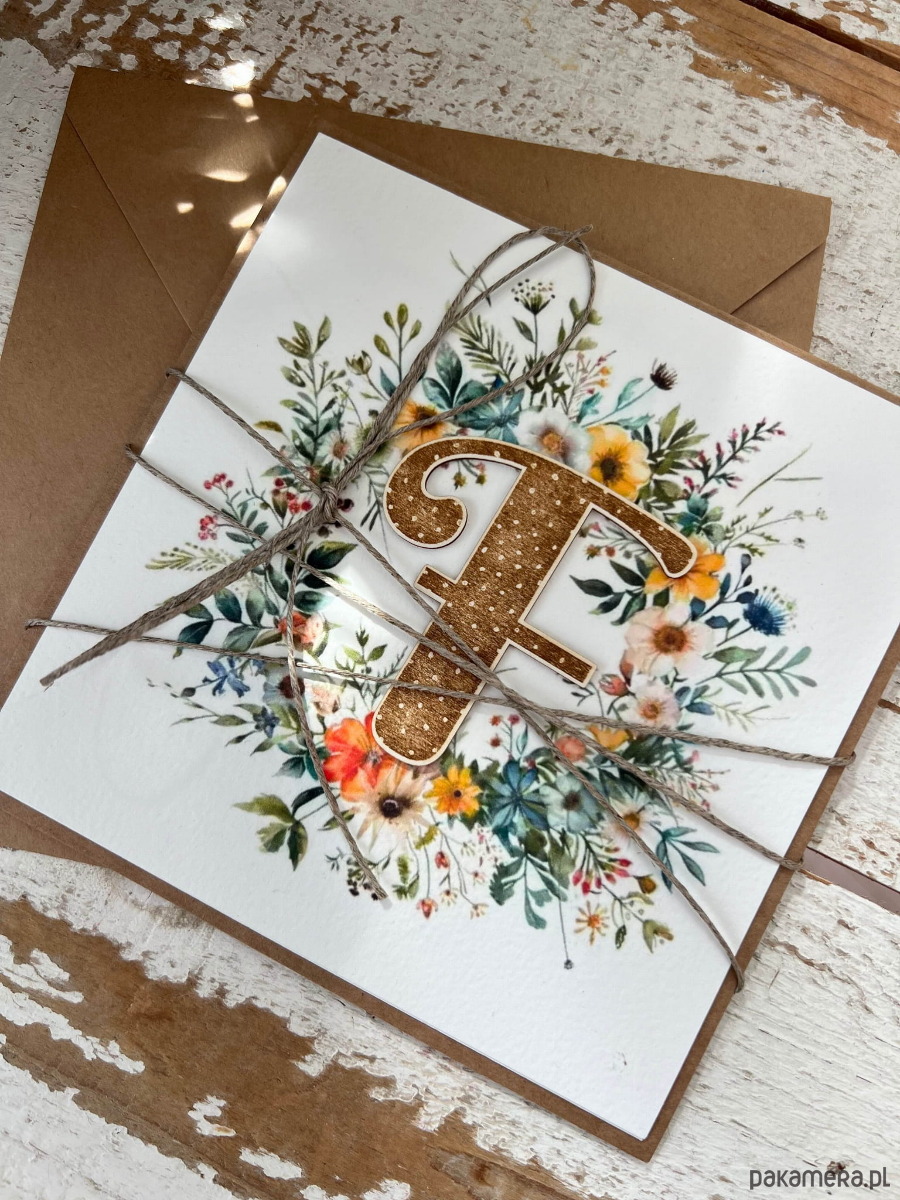 Wyjątkowa kartka ręcznie robiona na chrzest święty dla chłopca, prezent/pamiątka chrztu literka F