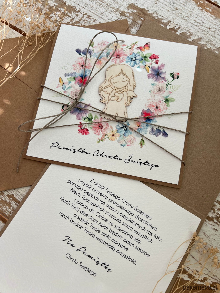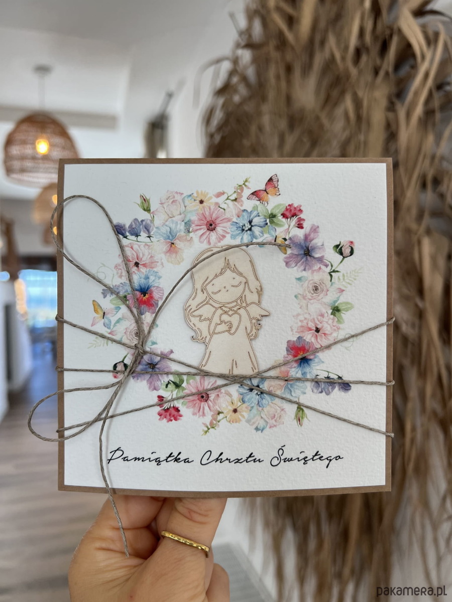 Wyjątkowa kartka ręcznie robiona na chrzest święty dla dziewczynki, prezent/pamiątka chrztu + najpiękniejsze życzenia