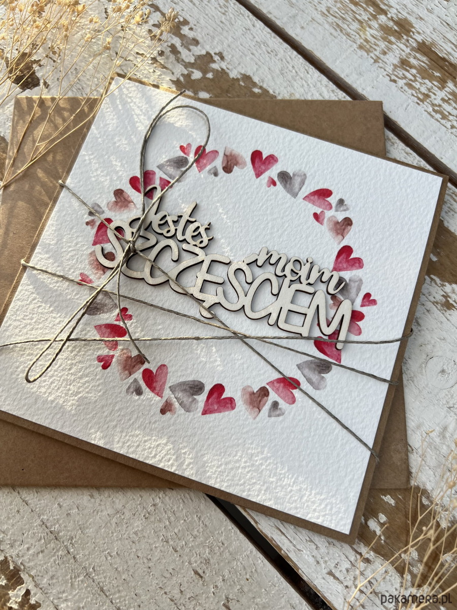 Wyjątkowa kartka ręcznie robiona na walentynki - walentynka jesteś moim szczęściem Cię