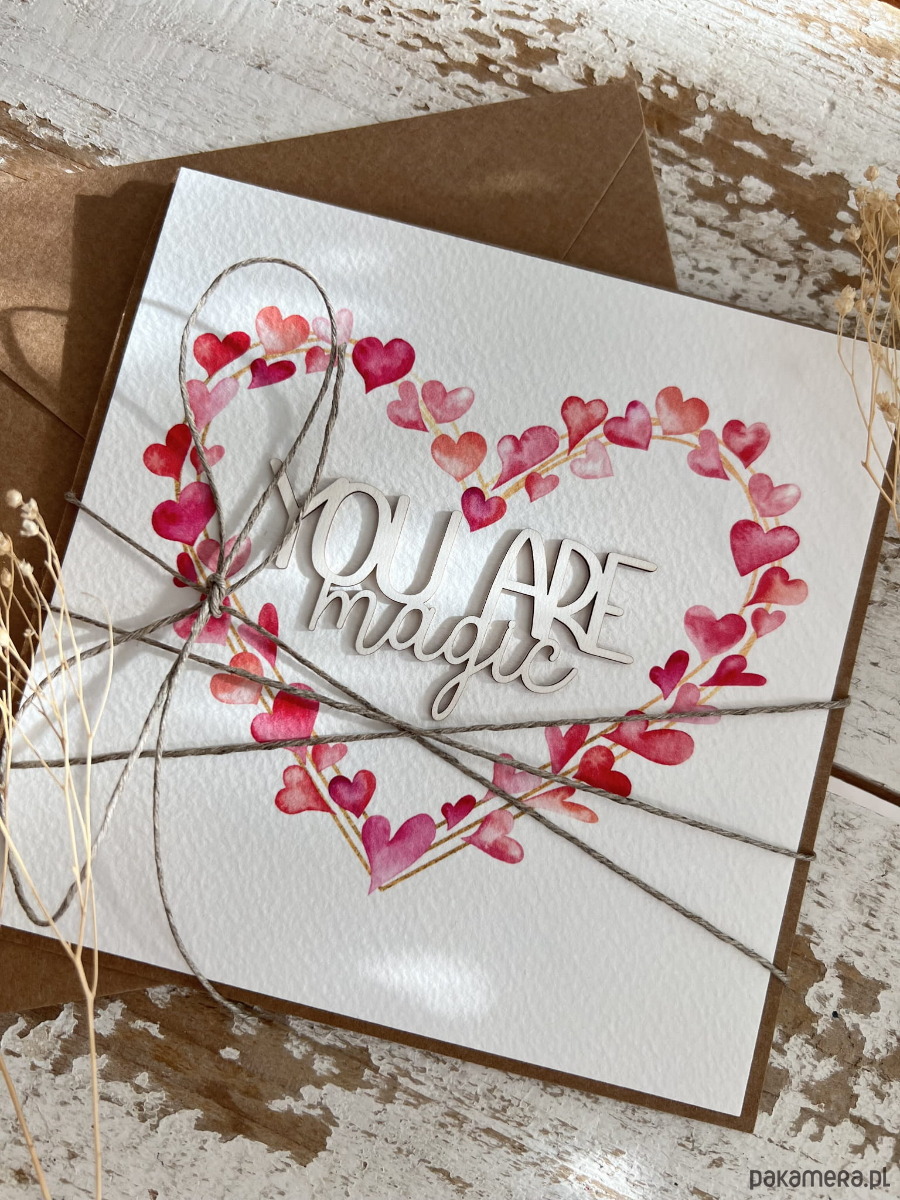Wyjątkowa kartka ręcznie robiona walentynkowa - kartka z sercem You are magic
