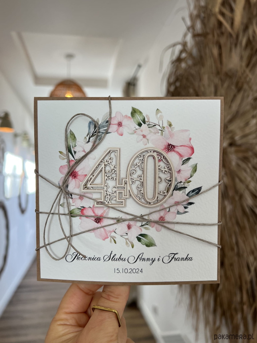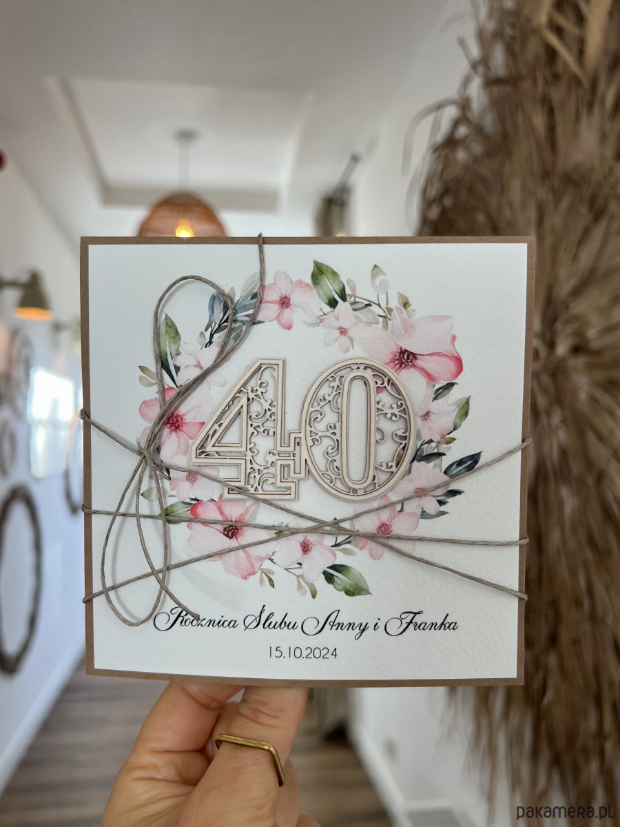 Wyjątkowa kartka ręcznie robiona z okazji 40 rocznicy ślubu z personalizacją + najpiękniejsze życzenia na rocznicę ślubu
