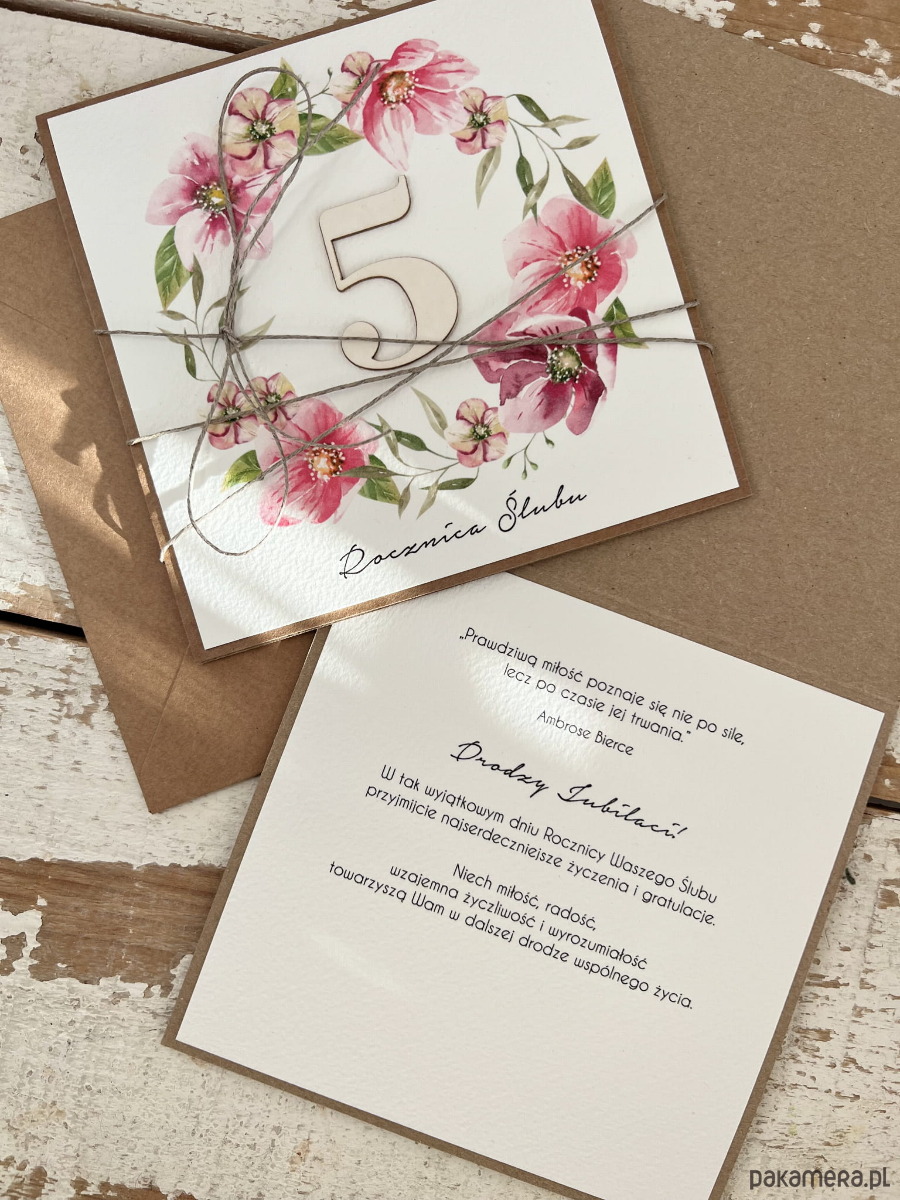 Wyjątkowa kartka ręcznie robiona z okazji 5 rocznicy ślubu