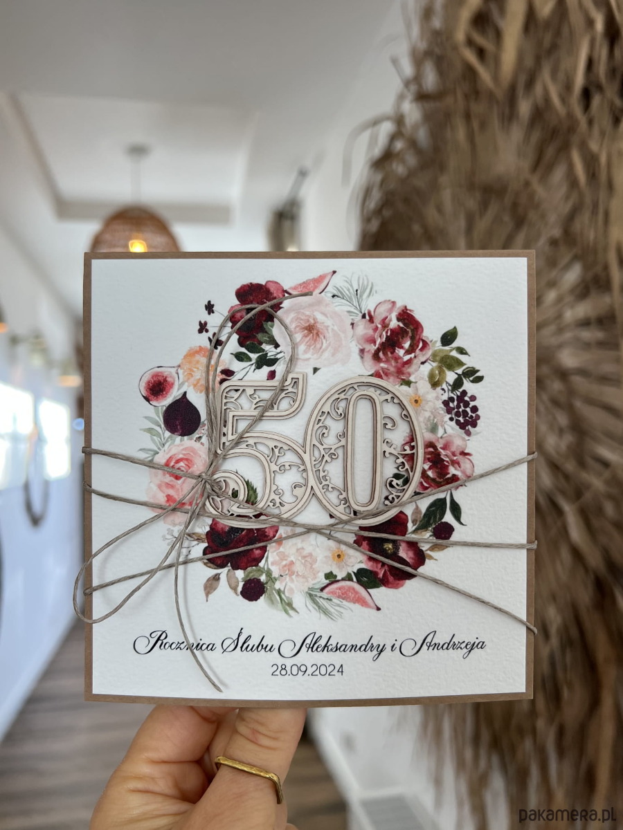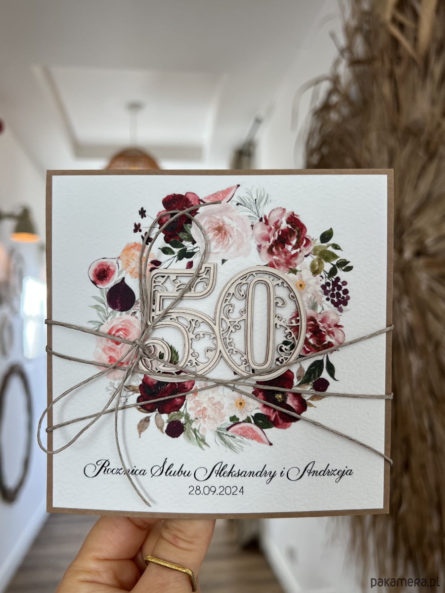 Wyjątkowa kartka ręcznie robiona z okazji 50 rocznicy ślubu z personalizacją + najpiękniejsze życzenia na rocznicę ślubu
